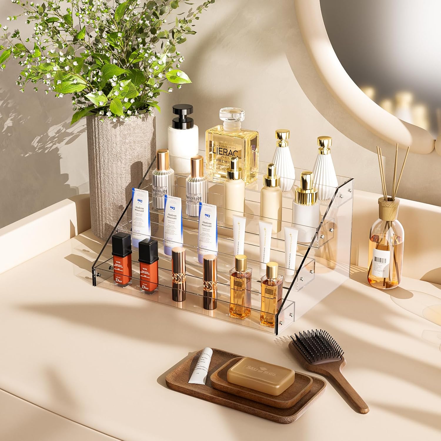 - 【Acrylic Display Stands】: This acrylic perfume organizer is made of high-quality acrylic material, which is durable and has a strong load-bearing capacity, which can perfectly display what you want. The clear acrylic display riser shelf adopts the design of triangular brackets on both sides and embedded screws, which is flat and stable, and it does not affect the placement of items.