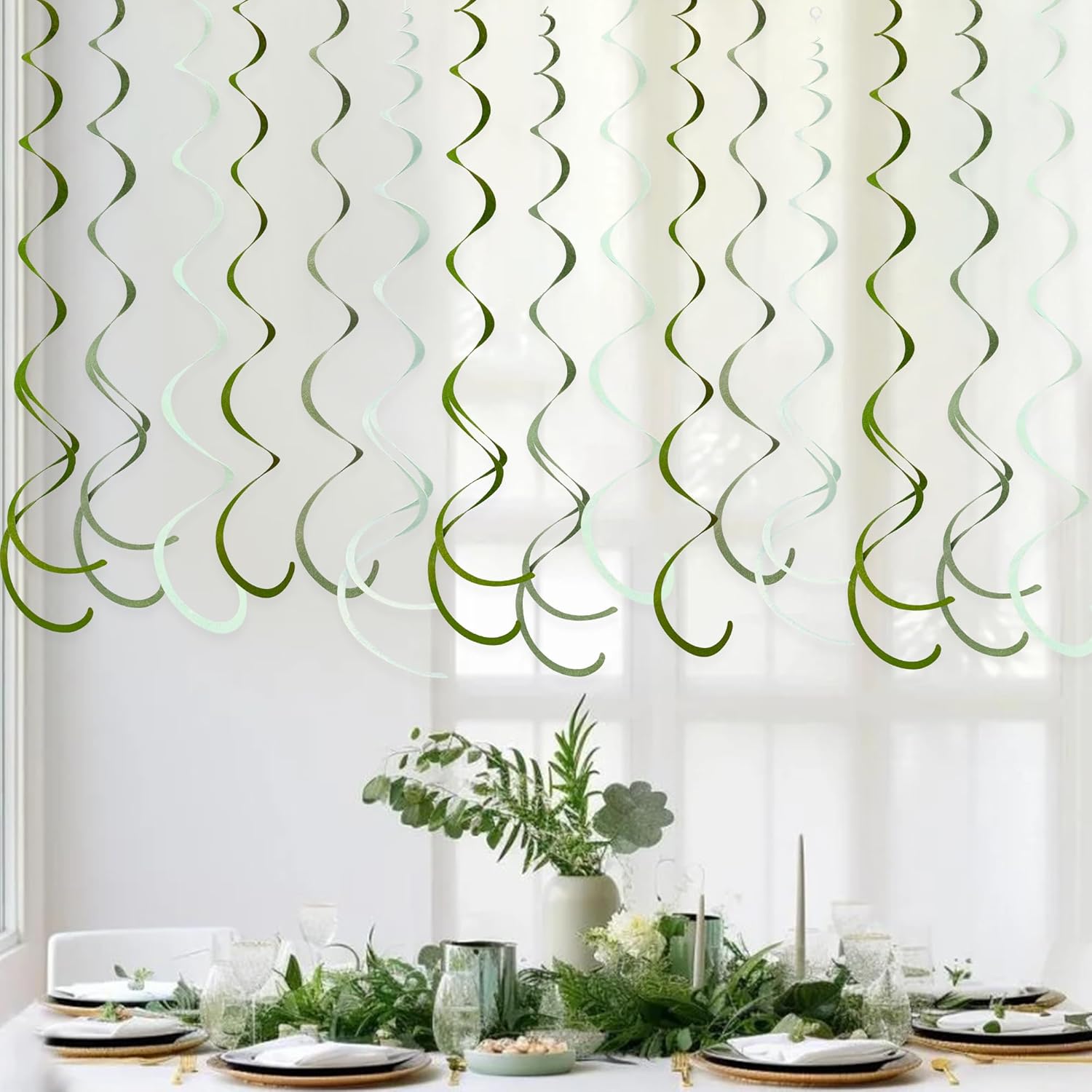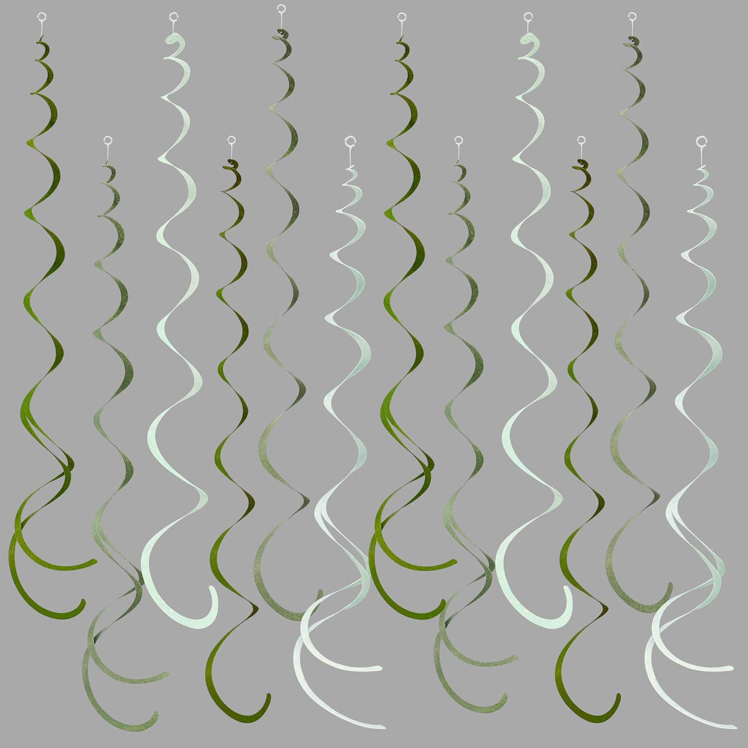 - Package Contains - 36 packs of gradient sage green swirl party streamer,Each swirl can extends to approximately about 2.62 feet long,Meeting daily general needs.Comes with 40 plastic hooks for hanging.