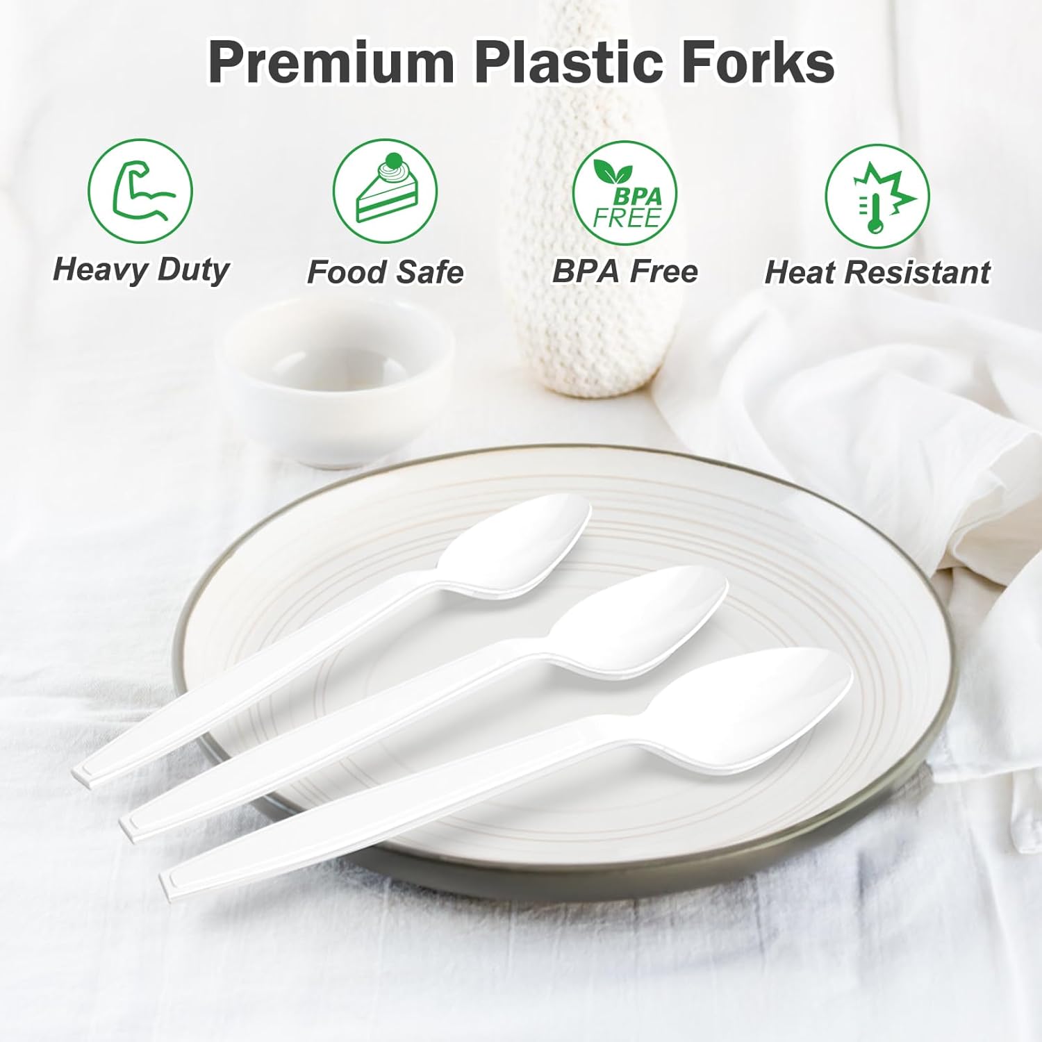 - 【Premium Material】: Dealusy white plastic spoons disposable are made of food grade polystyrene, total BPA free and toxin free for your healthy meals.