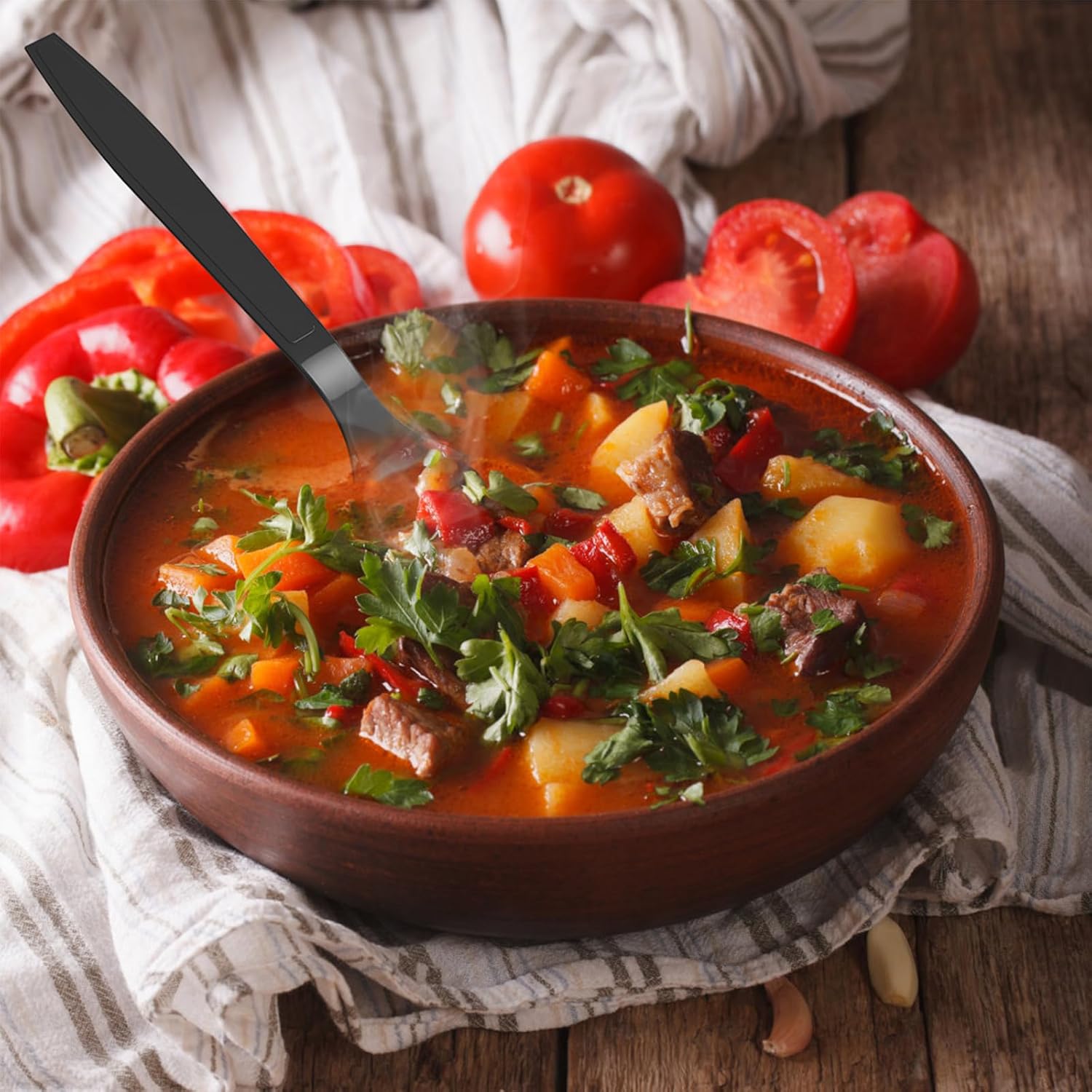 - 【Premium Material】: Dealusy black plastic spoons disposable are made of food grade polystyrene, total BPA free and toxin free for your healthy meals.
