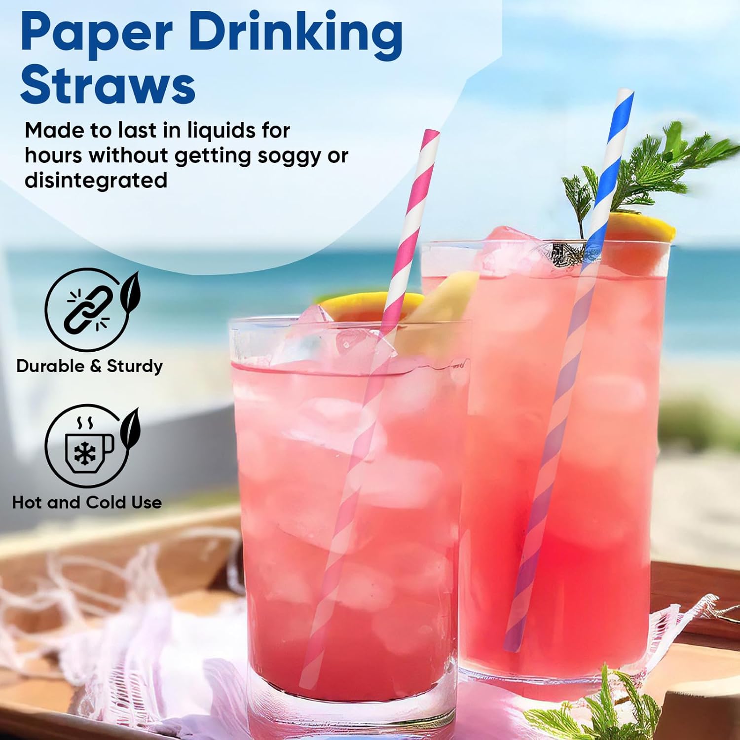 7.75" Colorful Striped Paper Drinking Straws, 500 Counts in Bulk, 10 Assorted Colors, Disposable & Biodegradable - for Bar, Restaurant, Party, Crafts, Cake Pops