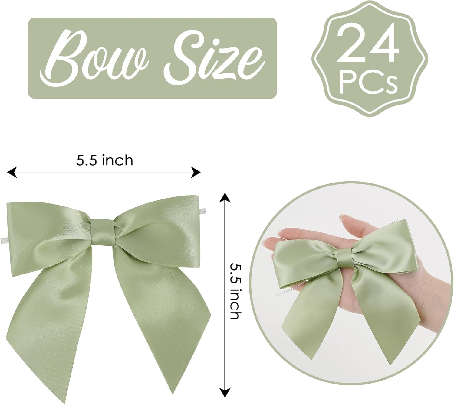 AIMUDI Sage Green Satin Bows 5.5" Bows for Gift Wrapping Satin Twist Tie Bows Premade Ribbon Bows for Treat Bags Invitations Baskets Wreaths Crafts Wedding Birthday Baby Shower Decorations, 24 PCs