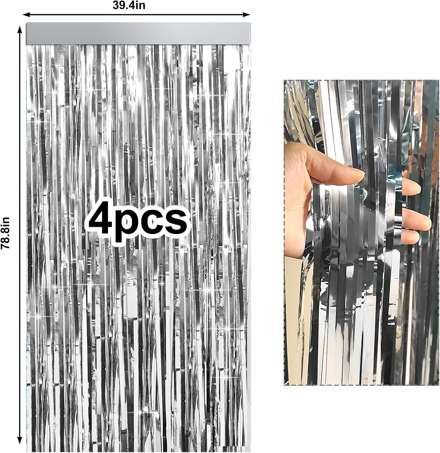 - Silver Fringe Backdrop: You will receive 4 pieces silver tinsel backdrop, each pack curtains size is 3.3ft x 6.6ft, enough length for decorate your party. These foil backdrop curtains are perfect for the door or wall to create an impressive decoration for parties, events, and photo booths.