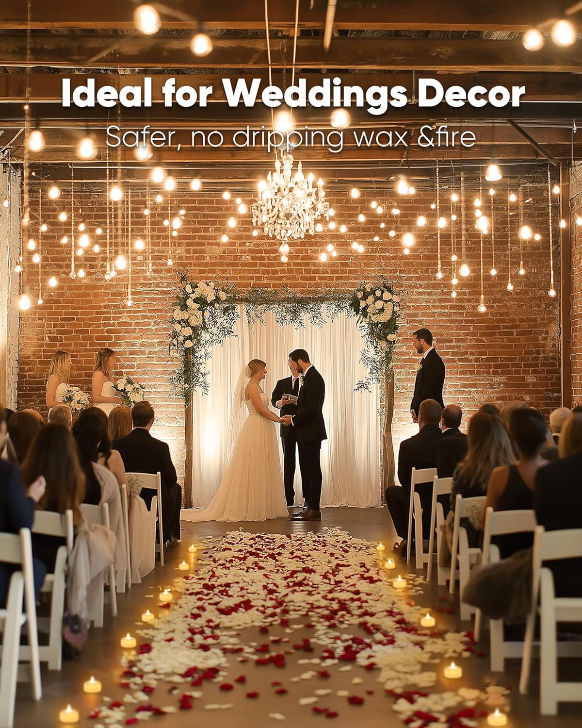 - Safe and Reliable: Designed with families in mind, our flameless tealights eliminate fire hazards, making them safe for homes with children, seniors, and pets. The wind-resistant design ensures that these battery operated candles can be safely enjoyed indoors and outdoors