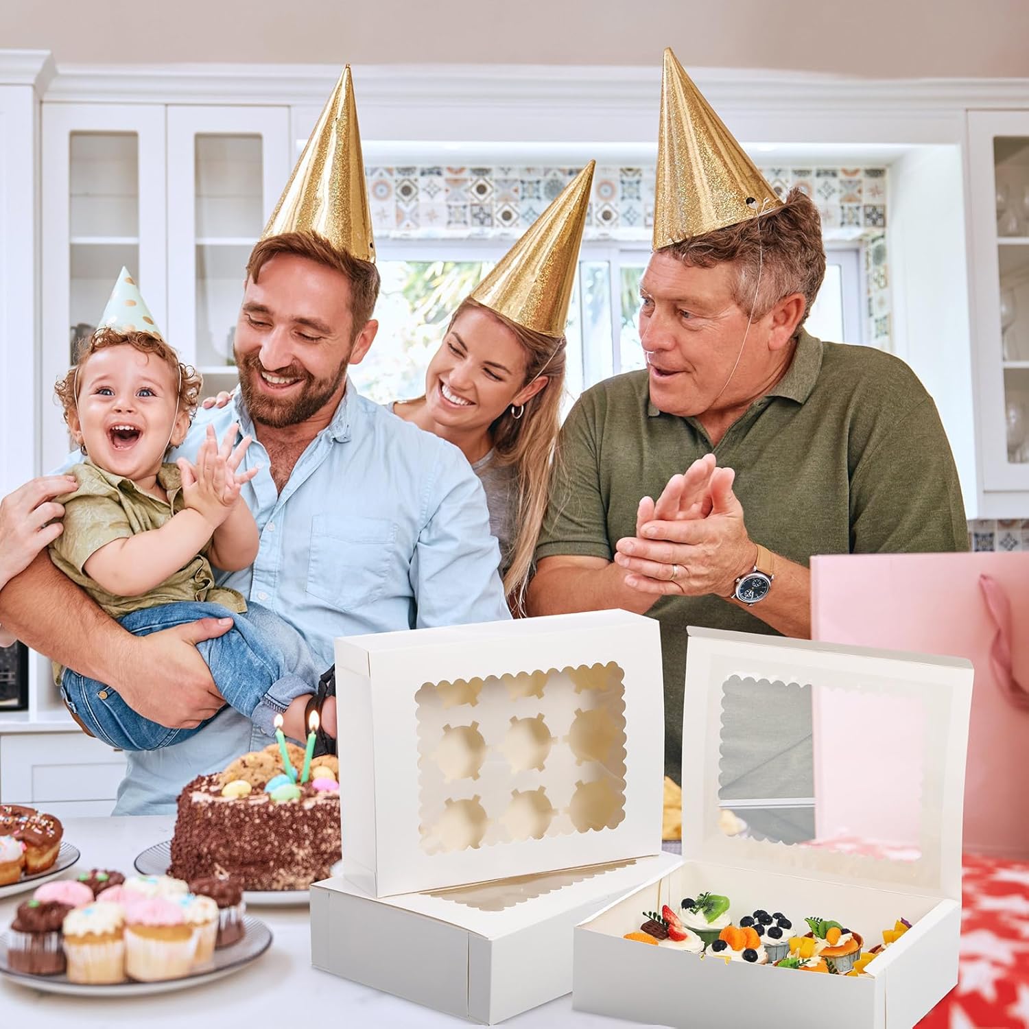 - Wide Application: these cupcake boxes are ideal gifts for all occasions, festivals, weddings, birthdays, party gifts, baby showers, anniversaries, Valentine's Day, Christmas, family gatherings, cupcake decoration parties, etc., can be applied not only as boxes for cupcakes, chocolate strawberries, donuts, bread and cookies, but also as gift boxes or storage boxes