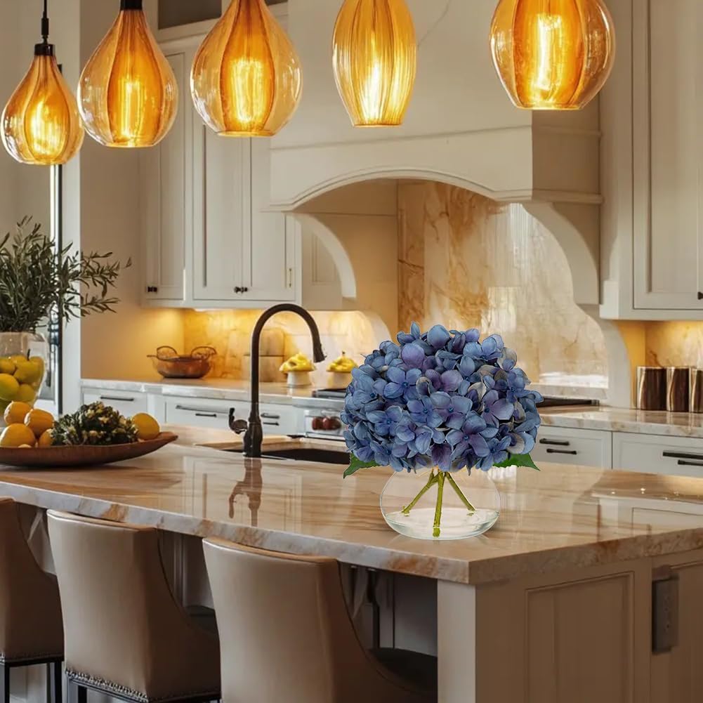 Hollyone Blue Hydrangea Fall Flowers Artificial for Decoration with Glass Vase Autumn Silk Faux Flower Arrangements with Fake Water Table Centerpiece Vase with Flowers Fall Decorations for Home
