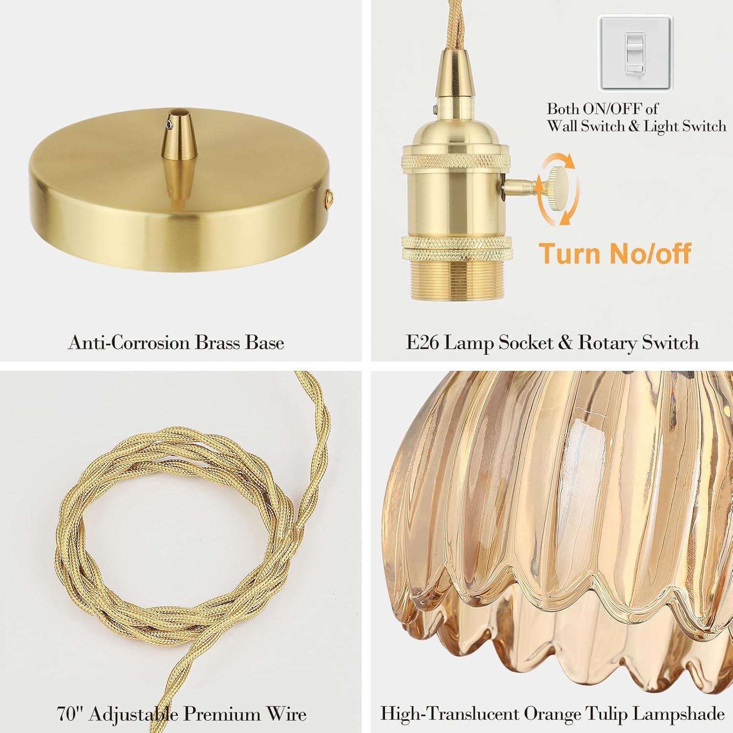 - 【High - Grade Materials】 Constructed with a brass lamp base, it features a retro - style elegant glossy surface and excellent texture. Not only is it full of artistic charm, but it's also anti - corrosion and anti - oxidation, ensuring long - term durability for your light fixture