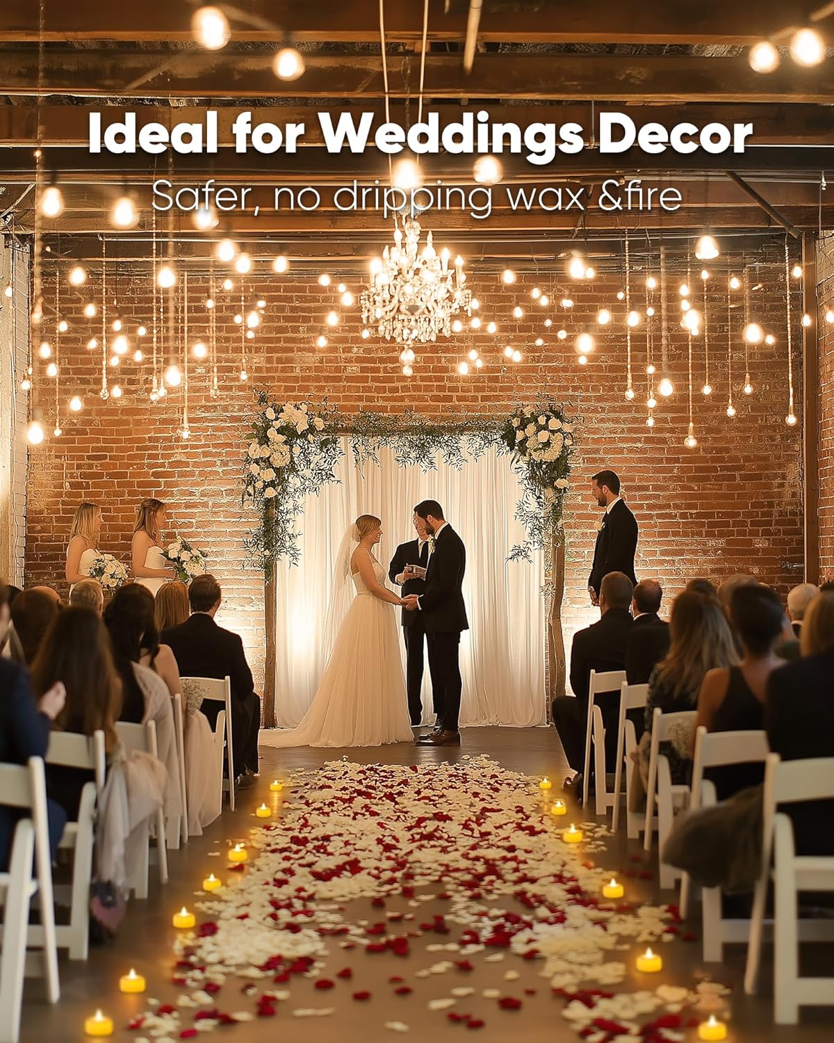 - Realistic and Bright: Mimicking the flicker of real flames, our 24 pack LED flameless tea lights emit a warm glow, perfect for enhancing the ambiance of your dining table or any room. They are ideal for weddings, proposals, Halloween, Christmas, themed parties, birthdays, and other special occasions