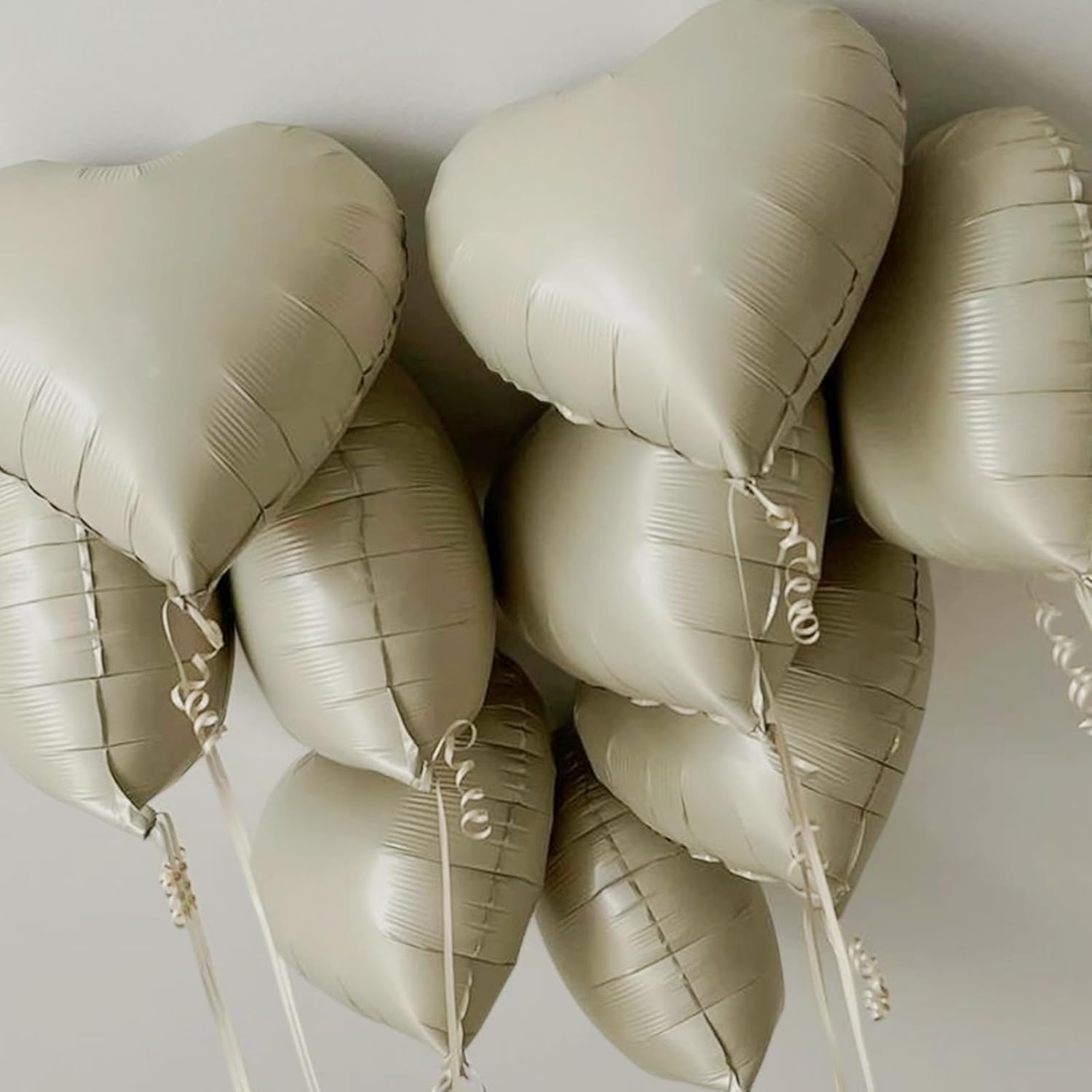 - Charming Cream Heart Balloons: Elevate your celebration with our set of 12 heart-shaped sand white balloons, each measuring 18 inches. Accompanied by a ribbon, these balloons are ideal for creating a festive and loving atmosphere at any special event.