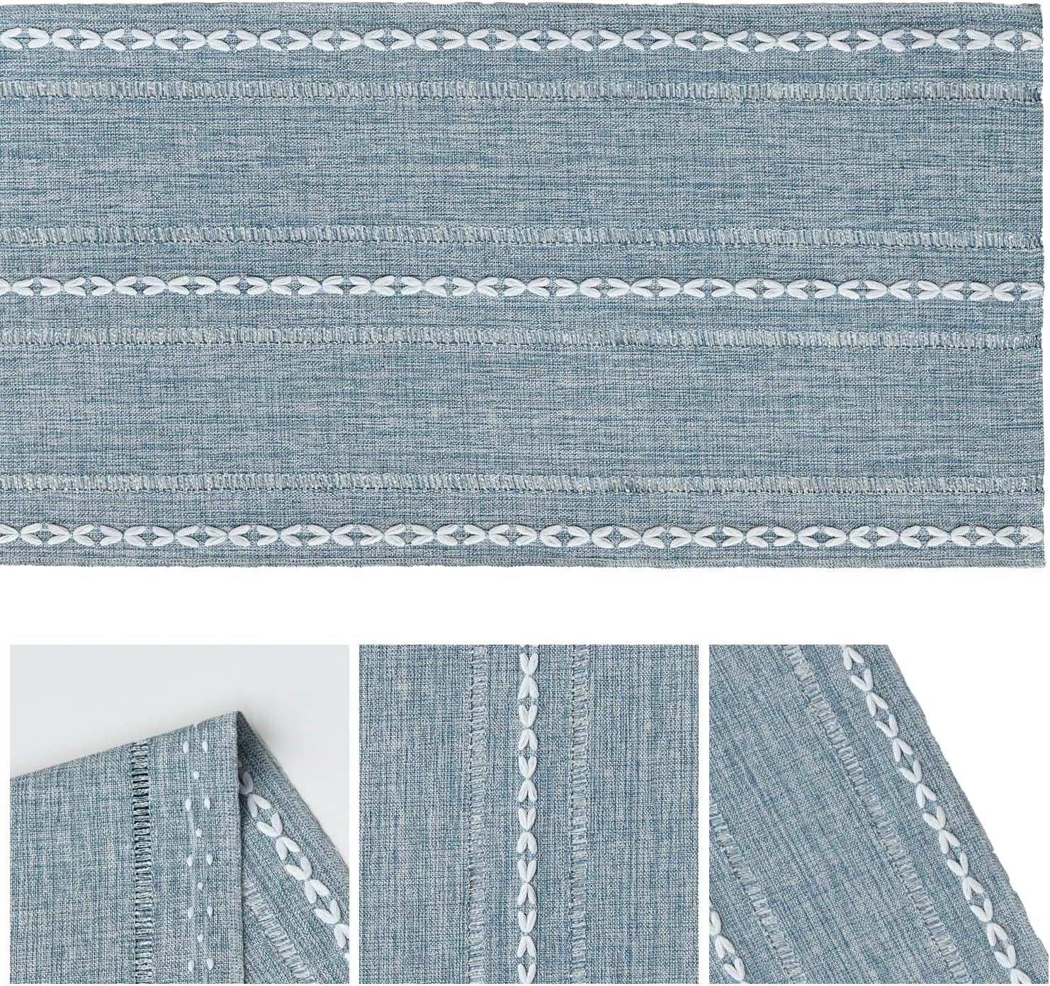 Artoid Mode Dusty Blue Cotton Linen Table Runner, Seasonal Rustic Embroidered Hollow Kitchen Dining Table Decoration for Home Party Decor 13x72 Inch
