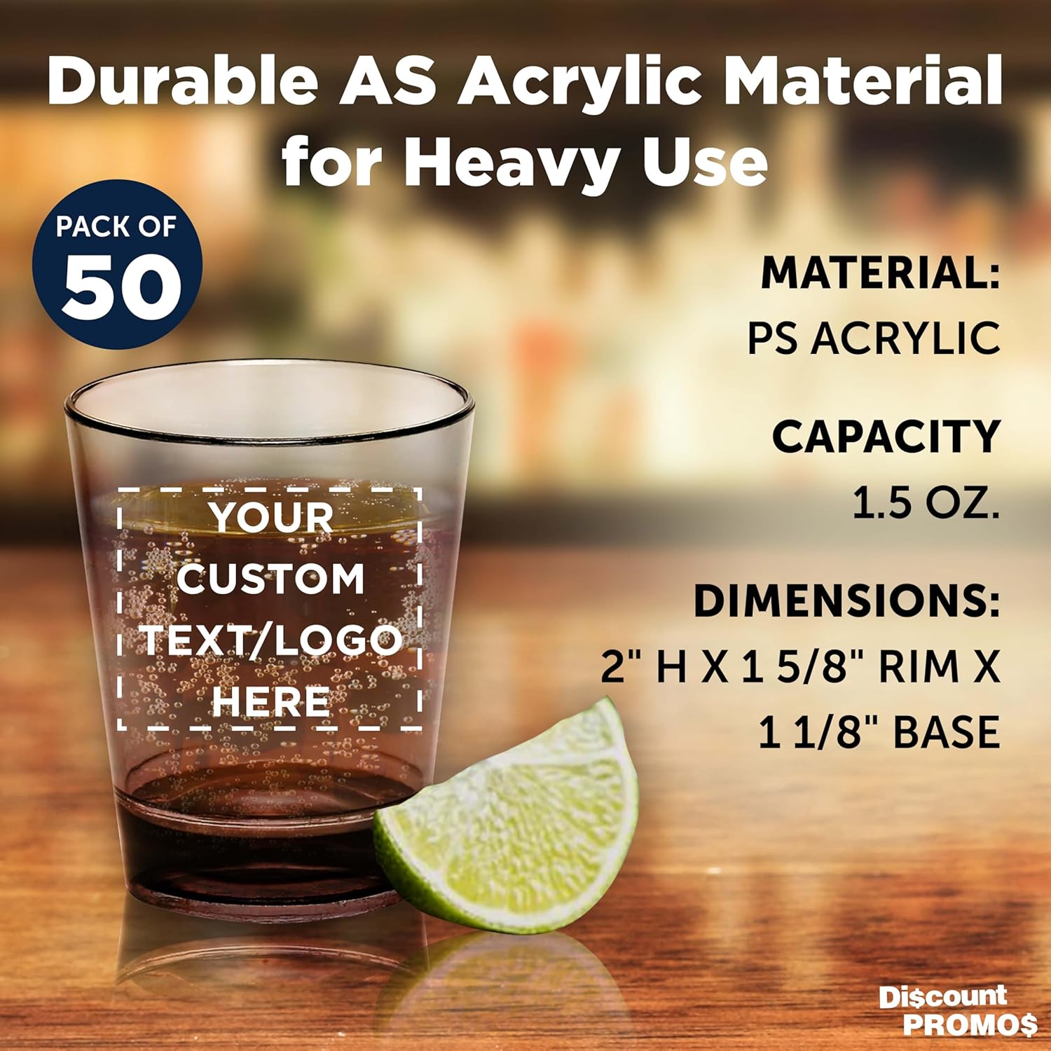 - DURABLE - these cheap shot glasses have thick bases along with a sheer rim to portray only the classiest look for your barware! 1.5 oz. Translucent Plastic shot glasses are strong so they won't crack, chip, or break easily.