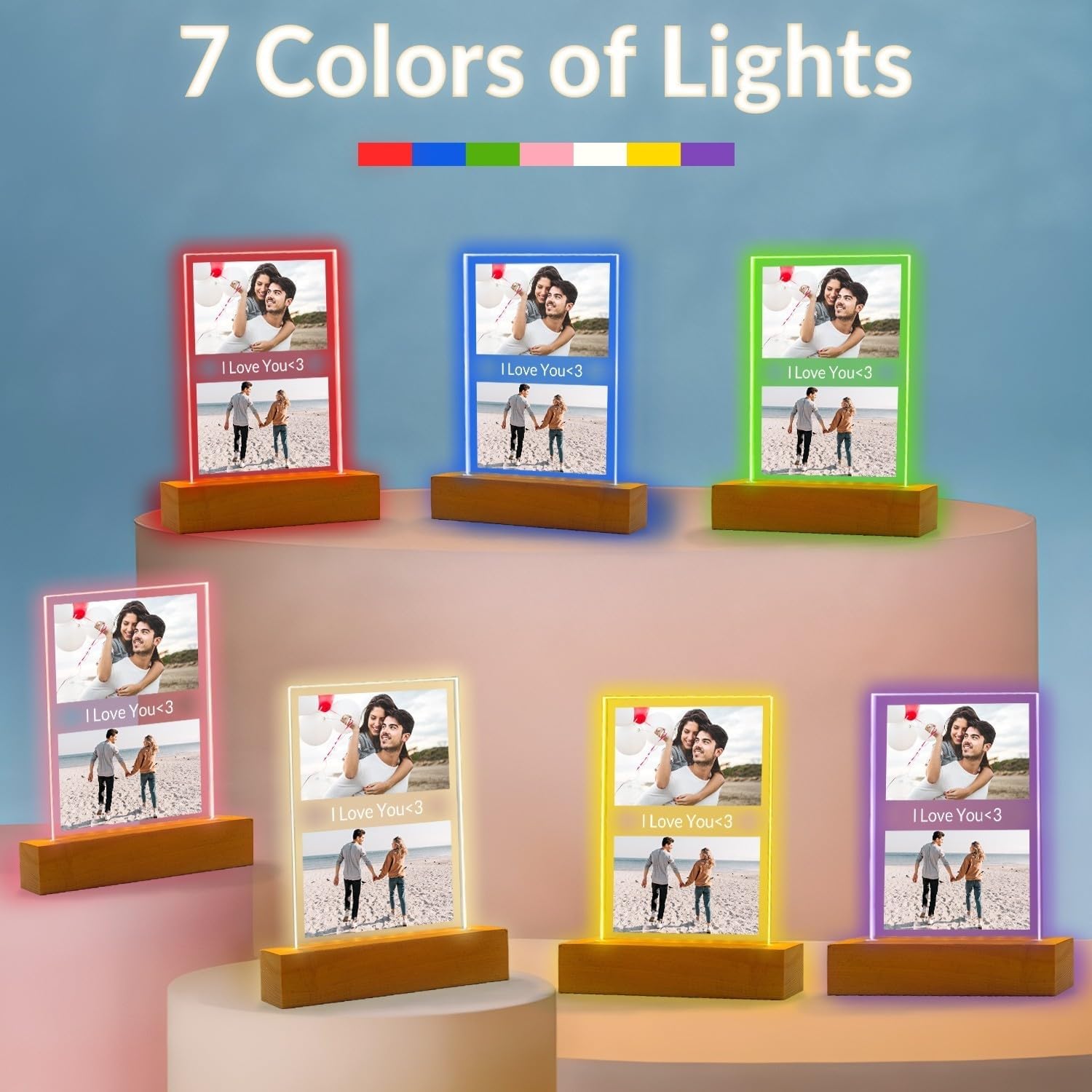 Personalized Anniversary Couple Gifts for Women & Men, Custom Picture Frames with Photo, Personalized Photo Frame with Night Light, Customized Picture Frame, Custom Photo Gifts for Her & Him