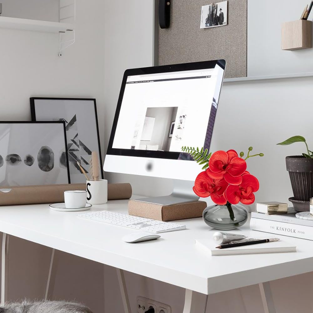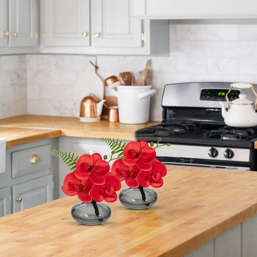 Red Orchids Artificial Flowers Faux Orchids Arrangement in Black Glass Vases Set of 3 Real Touch Phalaenopsis Orchid Flowers Small Fake Orchid Centerpiece for Dining Room Table