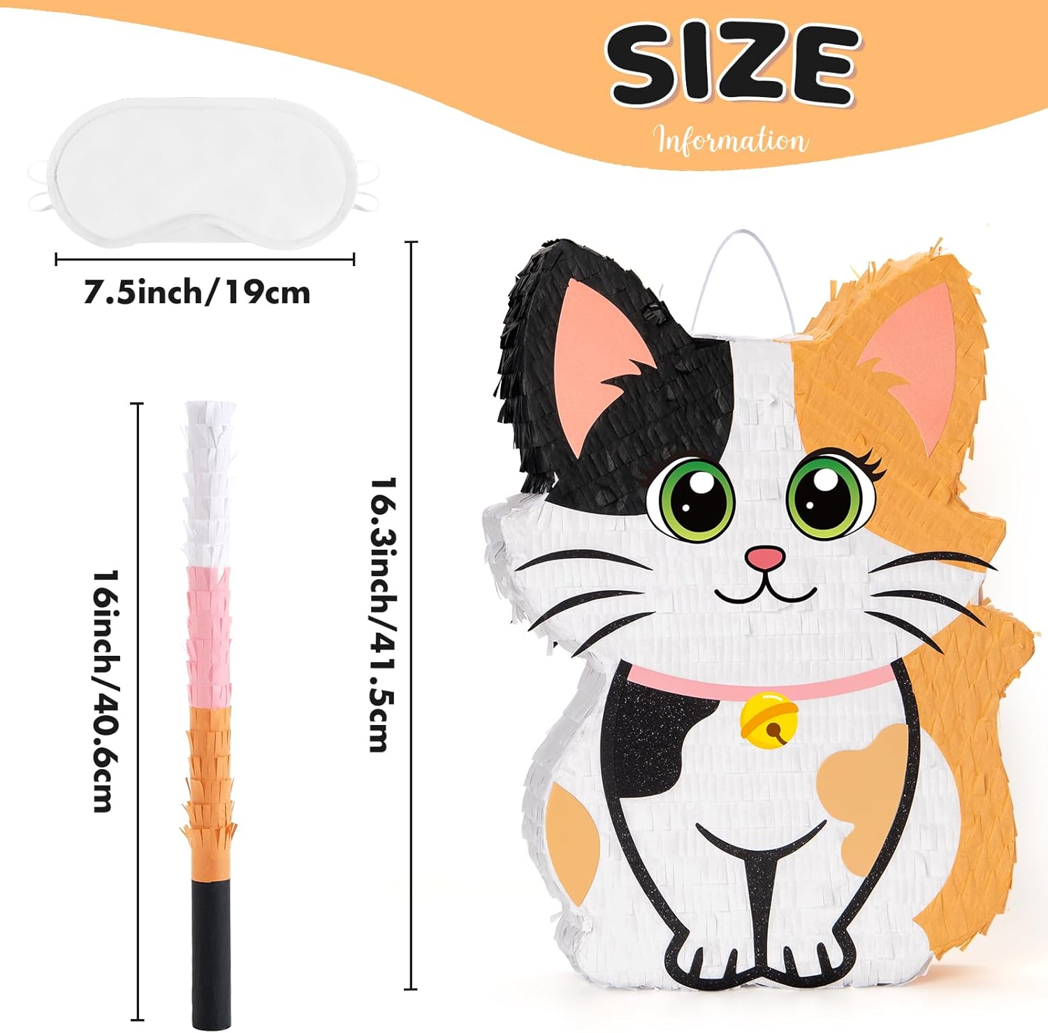 - CAT PIÑATA - Meet your purr-fect party pal! This adorable striped cat piñata features soft brown, white & black fur, big sparkly eyes, and an irresistibly cute face. Filled with sweet treats & surprises, it’s guaranteed to make your celebration meow-tastic!