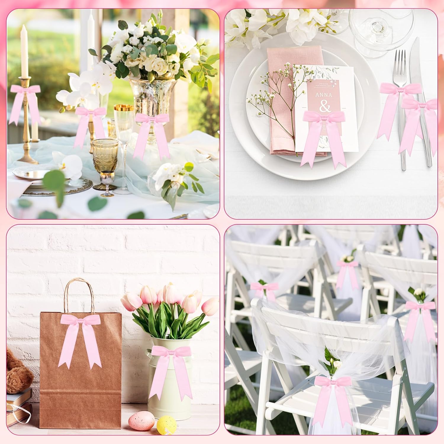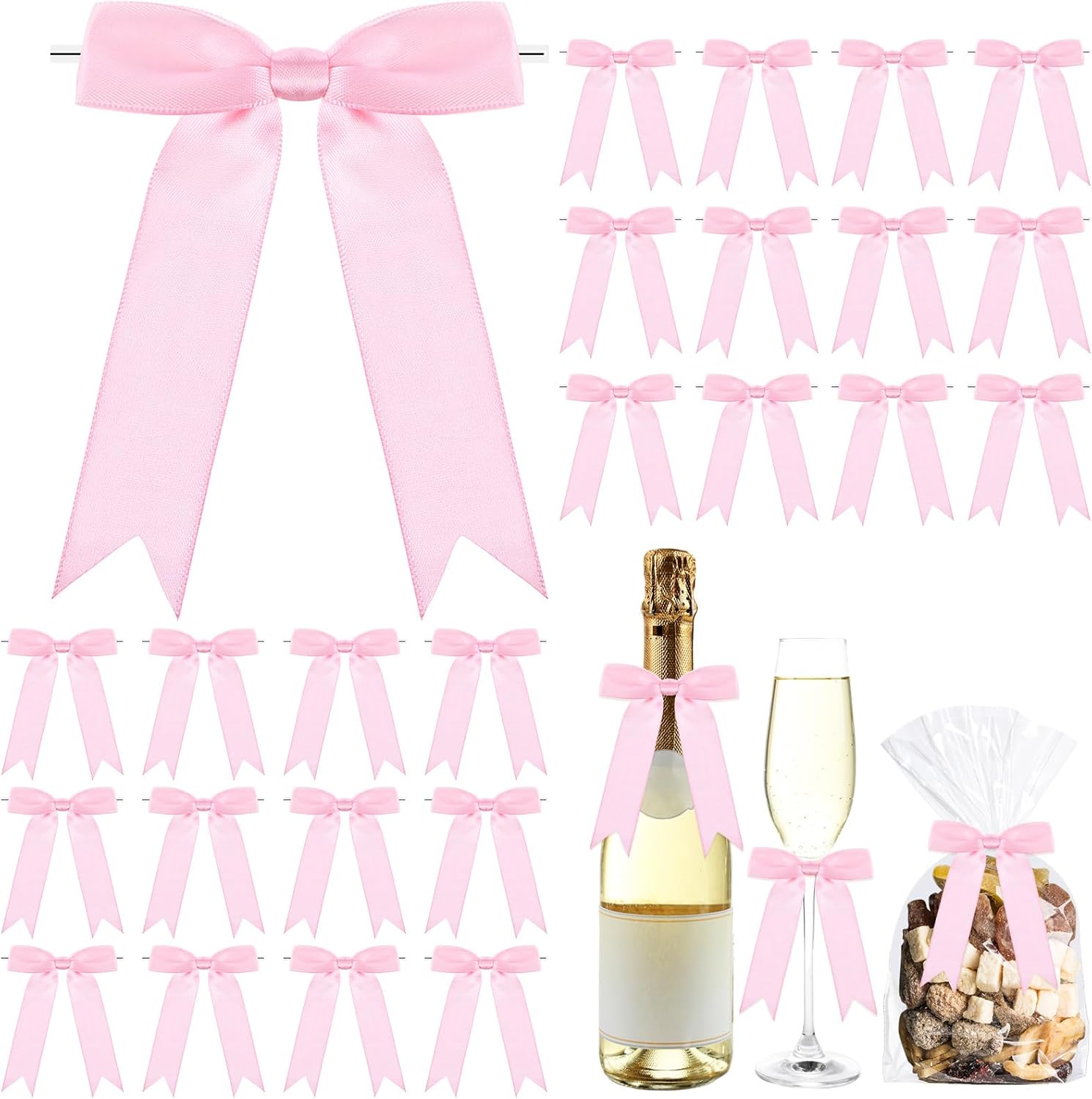 - Pink Twist Tie Bows: our package includes 24 ribbon bows and 24 twist ties; This set will easily meet your various needs for decoration or DIY projects; The dimensions of our bow are approximately 3.5 x 5 inches/ 9 x 13 cm, with a ribbon width of 1 inches/ 2.5 cm; The decent size is suitable for decorating gifts, packages, and other items; You can have fun with family and friend making eye catching decorative pieces by DIY