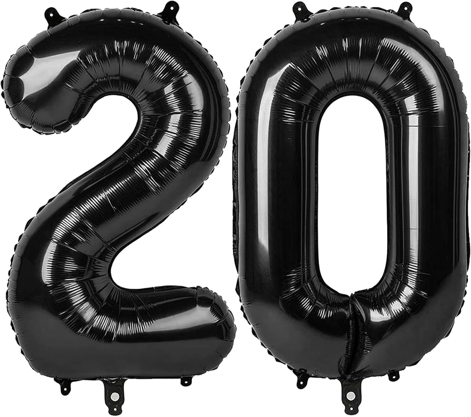 Black 40 Inch 20 Number Balloons, Balloon Decorations for 20 Birthday, Foil Giant 20 Birthday Graduations Anniversary Party