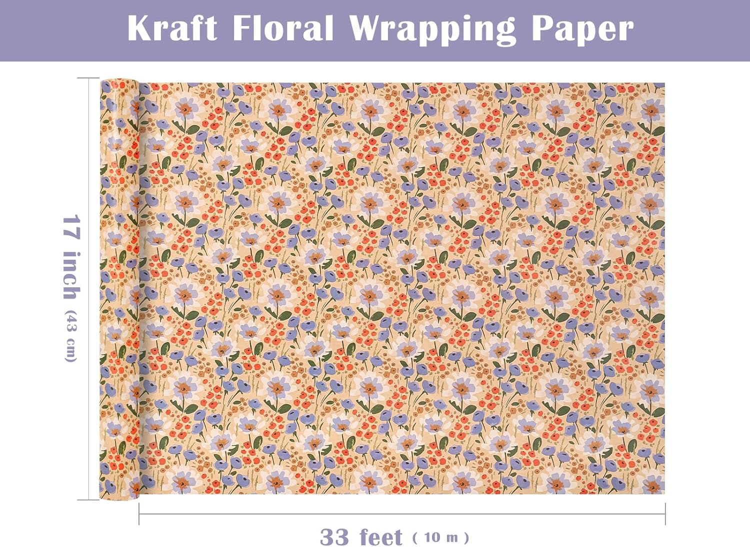 - Floral Design: Kraft watercolor floral wrapping paper design, will make your gift exudes charm and elegance. The flower wrapping paper make it ideal for creating a wonderful gift presentation that leaves a lasting impression.