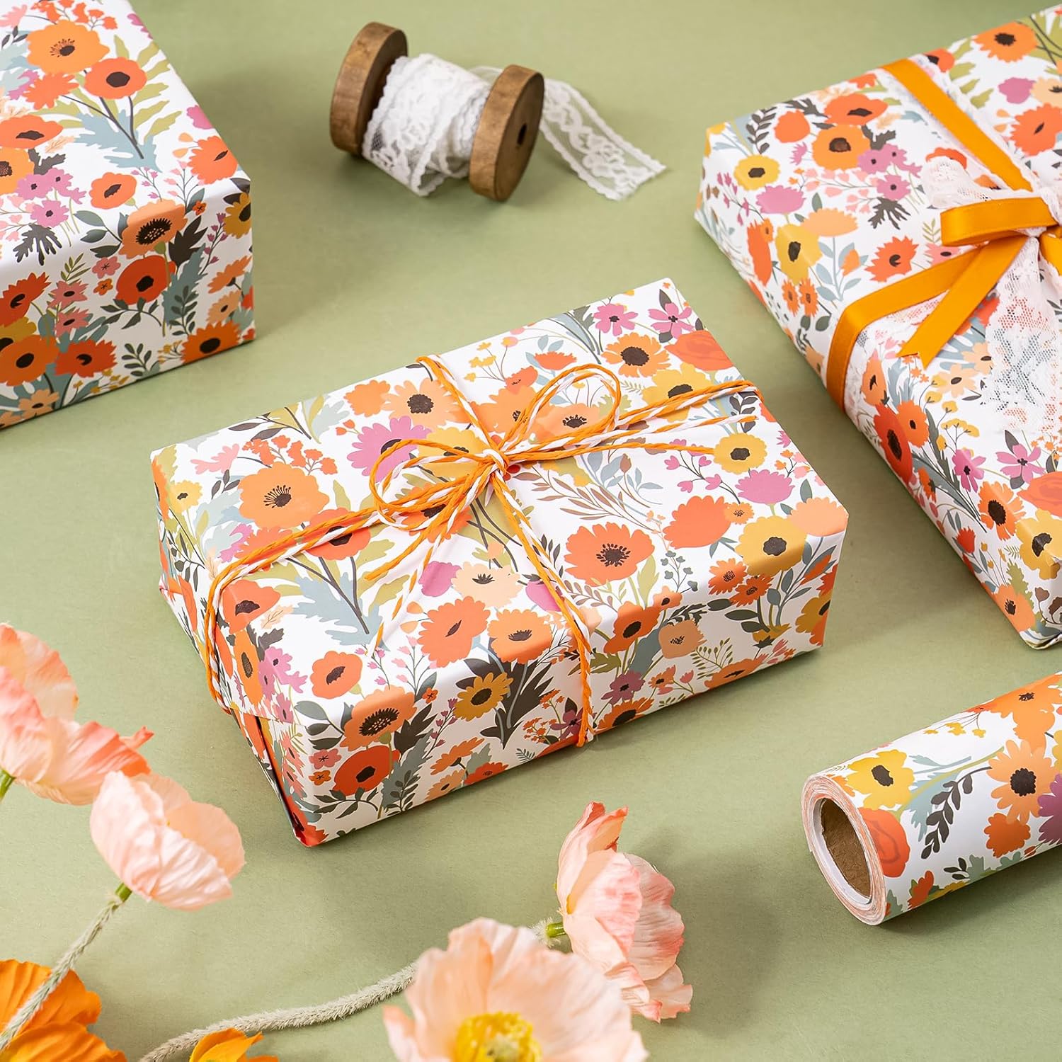- Floral Design: Kraft bright summer floral wrapping paper design, will make your gift exudes charm and elegance. The flower wrapping paper make it ideal for creating a wonderful gift presentation that leaves a lasting impression.