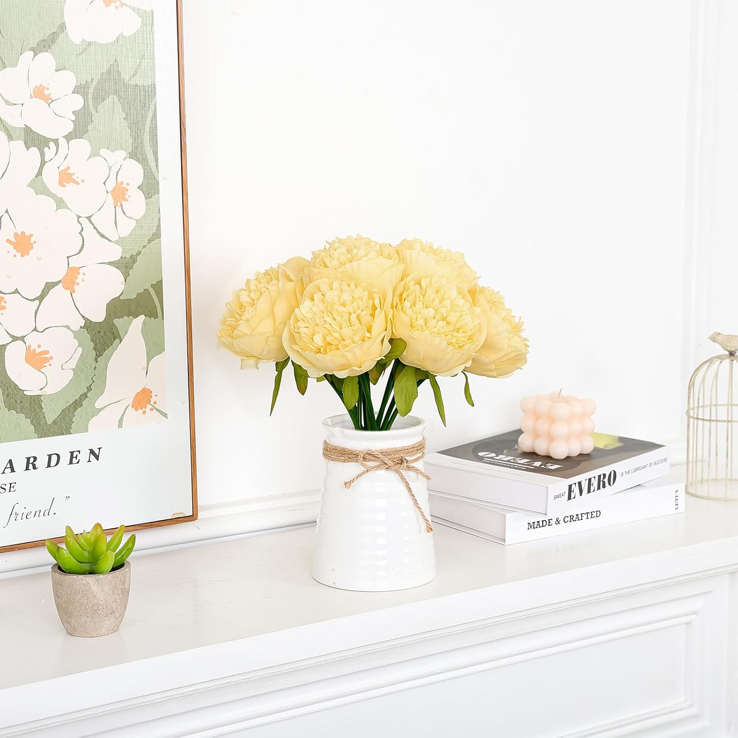 U'Artlines 10 Heads Artificial Peony Silk Flower Leaf Home Office Wedding Party Festival Bar Decor (Yellow)
