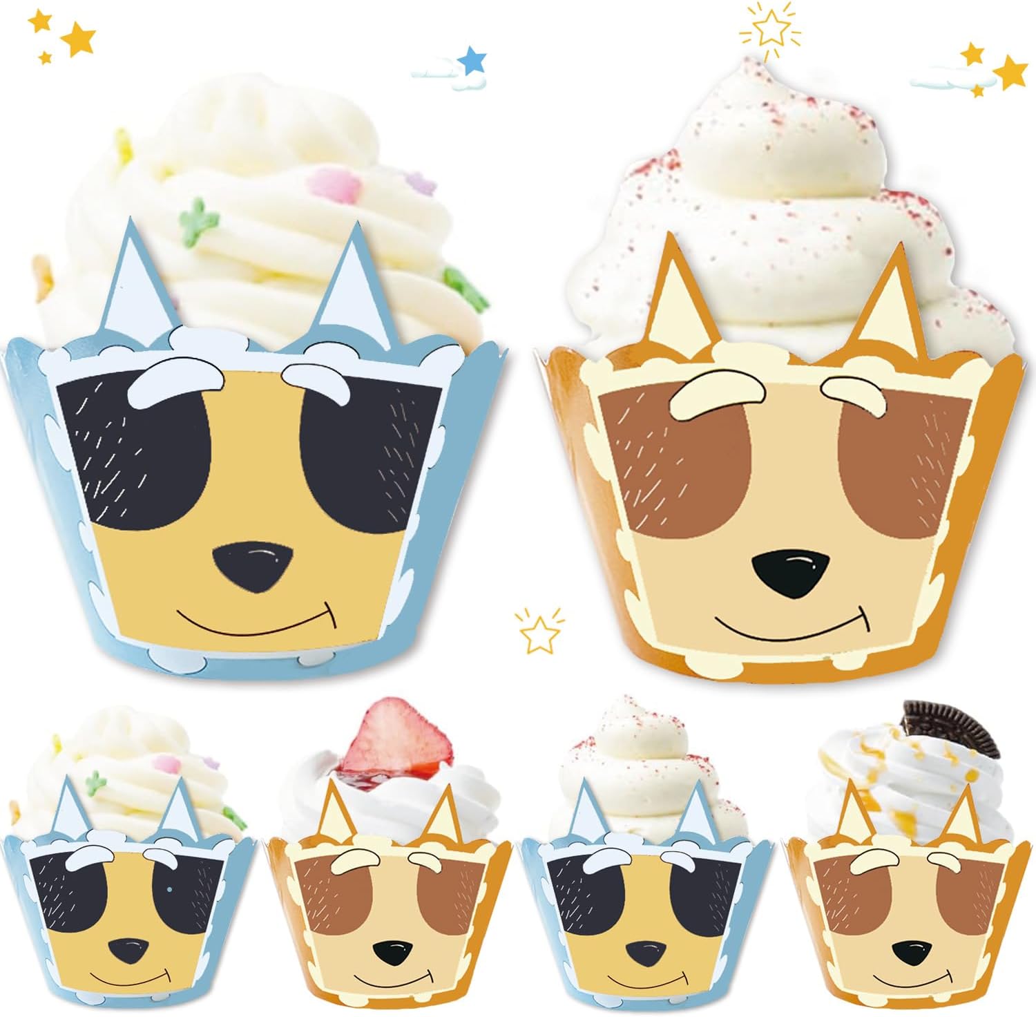 Cartoon Blue Dog Cupcake Wrappers 20pcs Dog Family Cupcake Liners Baking Cups for Blue Dog Theme Birthday Party Supplies Baby Shower Decorations