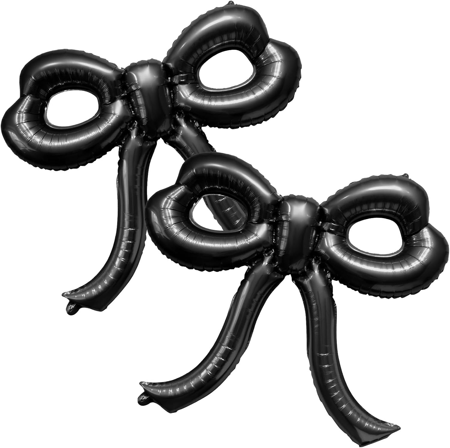 - Vivid Bow Balloons: You will get 2 giant black bow foil balloons with a size of 30x28 inches, 1 white ribbon and 1 straw, the quantity and size are enough to decorate any of your parties. Black birthday decorations has a vivid and eye-catching appearance, which can add a touch of elegance and romantic atmosphere to any party, and is a great choice for girls' parties of any age.