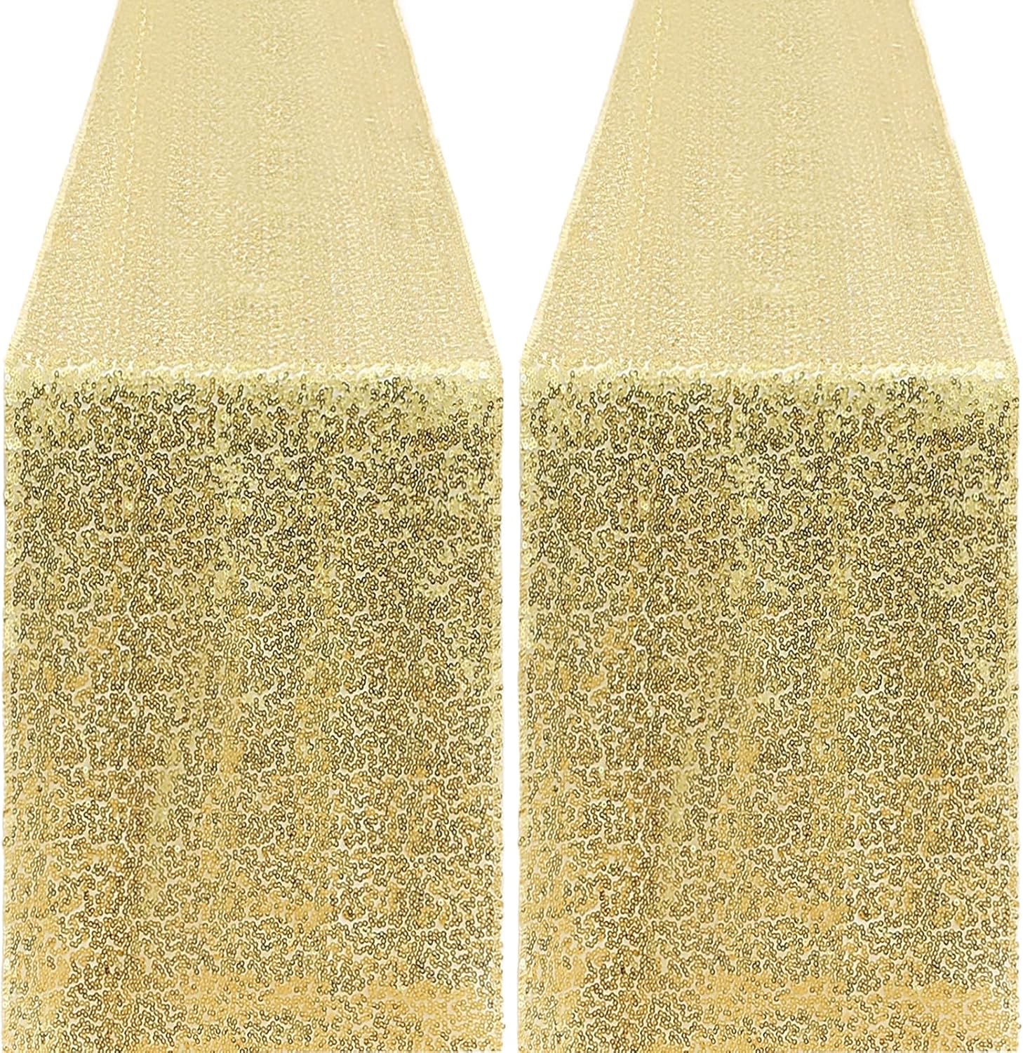 2 Packs 12 x 72 inches Sequin Table Runner, Gold Glitter Table Runner for Birthday Party Supplies Wedding Engagement Baby Shower Holiday Celebration Event Decorations