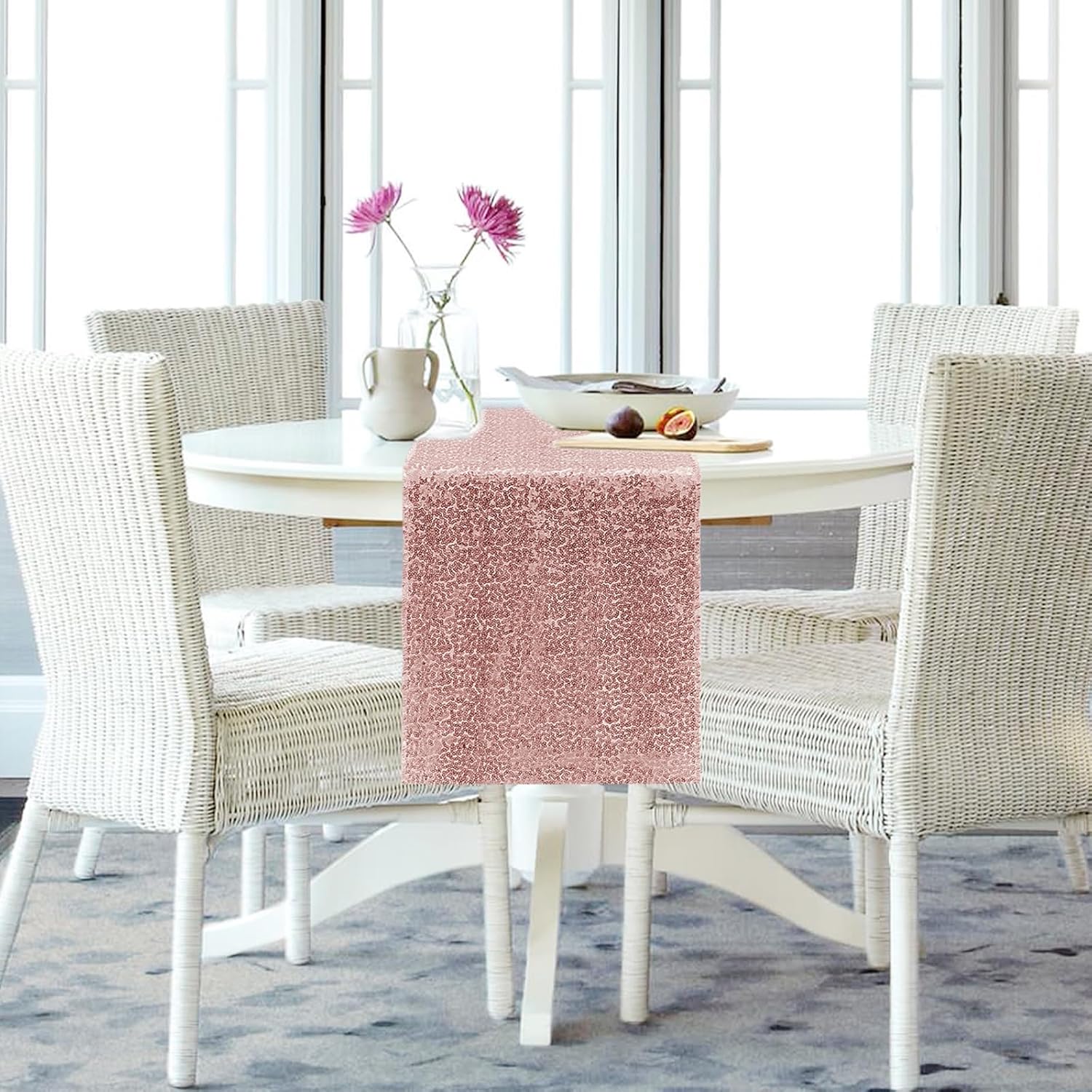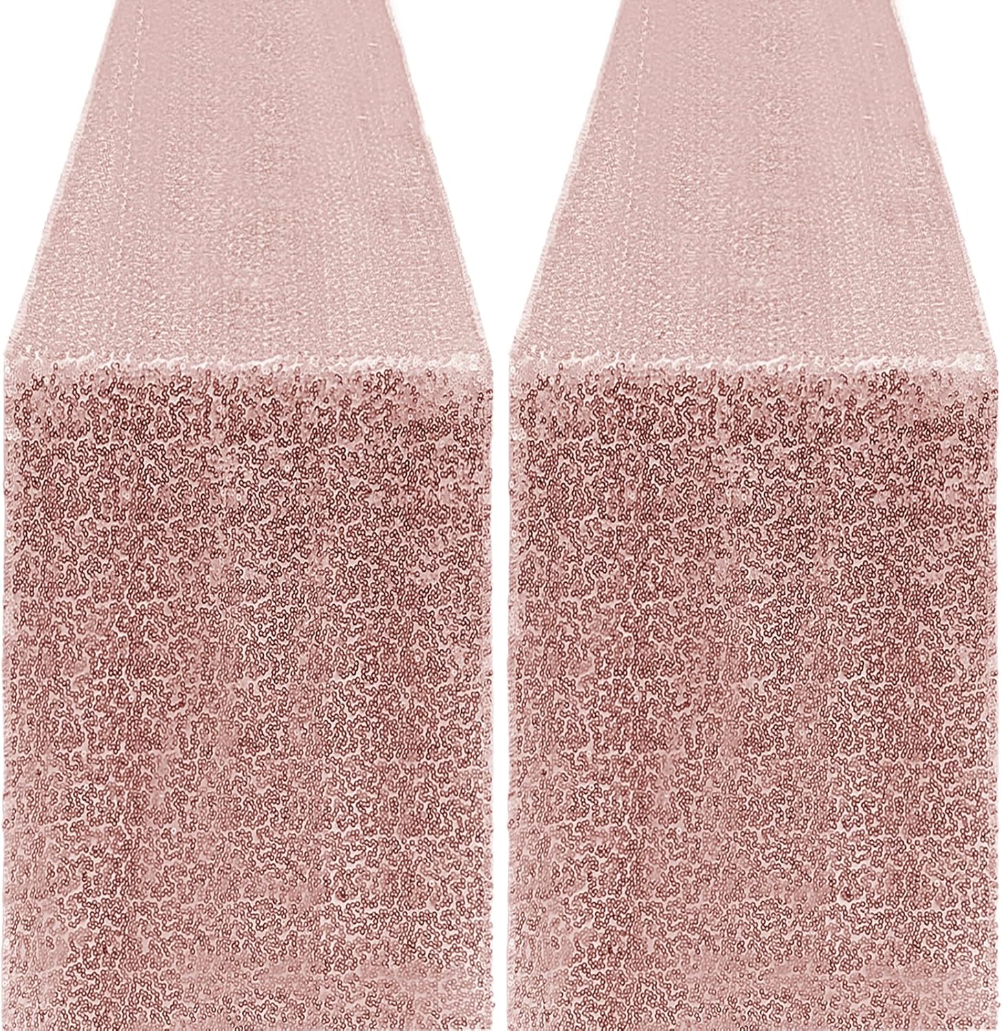 2 Packs 12 x 72 inches Sequin Table Runner, Rose Gold Glitter Table Runner for Birthday Party Supplies Wedding Engagement Baby Shower Holiday Celebration Event Decorations