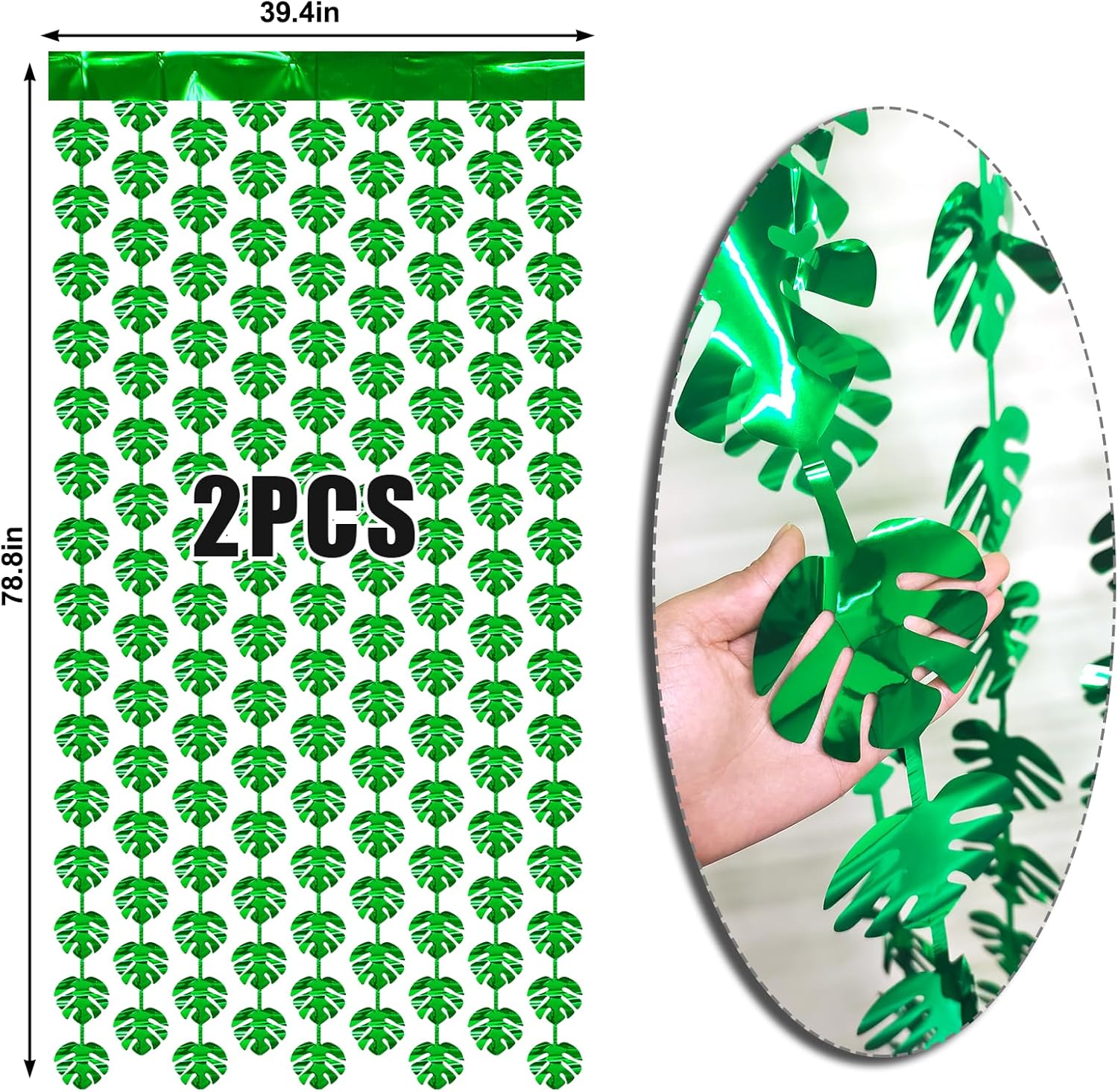 - Green Tropical Backdrop: You will receive 2 pieces green jungle leaf backdrop, each pack curtains size is 3.3ft x 6.6ft, enough length for decorate your party. These foil backdrop curtains are perfect for the door or wall to create an impressive decoration for parties, events, and photo booths.