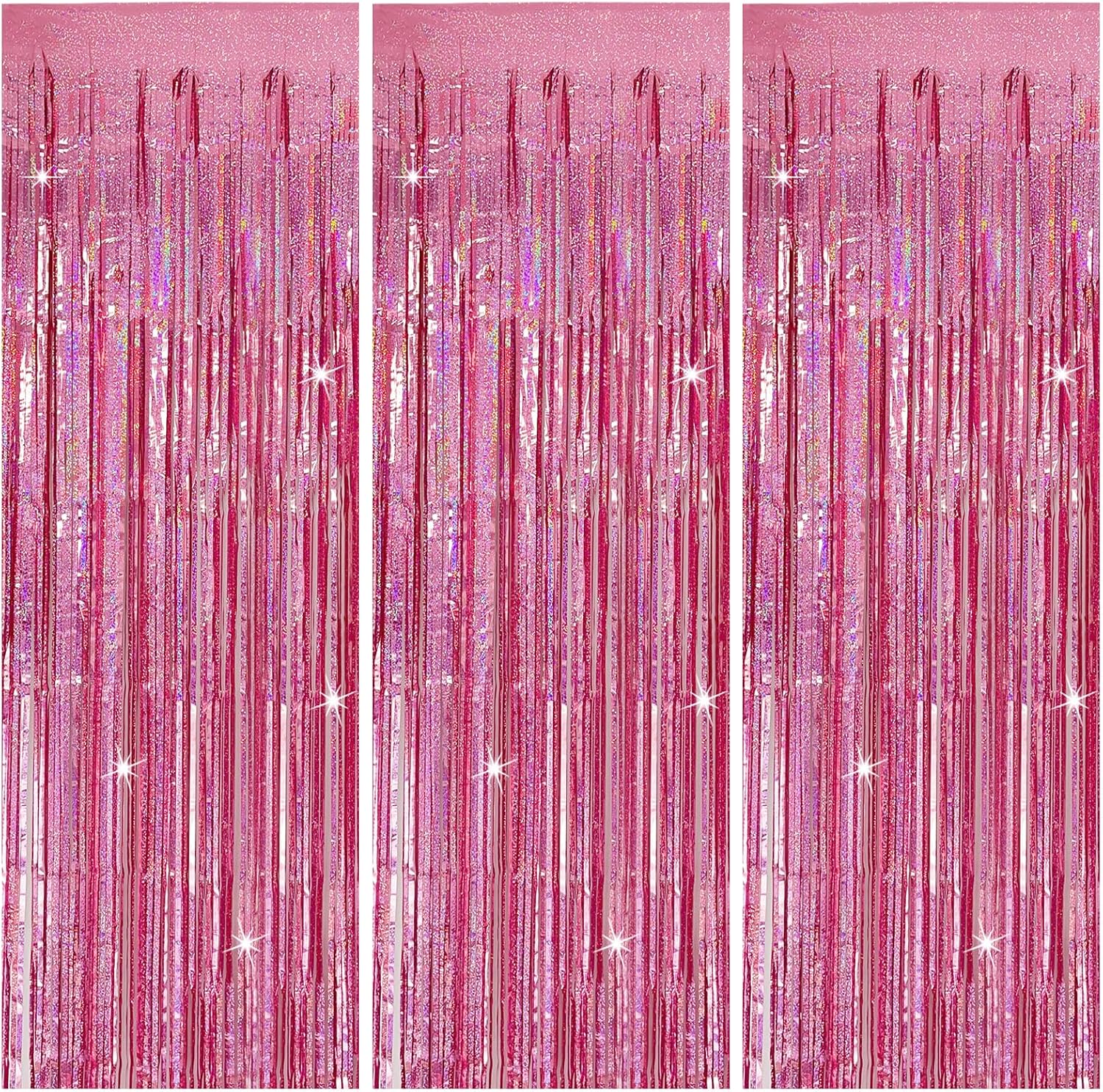3 Pack Pink Backdrop Party Decorations Tinsel Curtain Party Backdrop Foil Fringe Birthday Decorations Photo Booth Streamer Backdrop Pink Theme Bachelorette Graduation Party Decorations