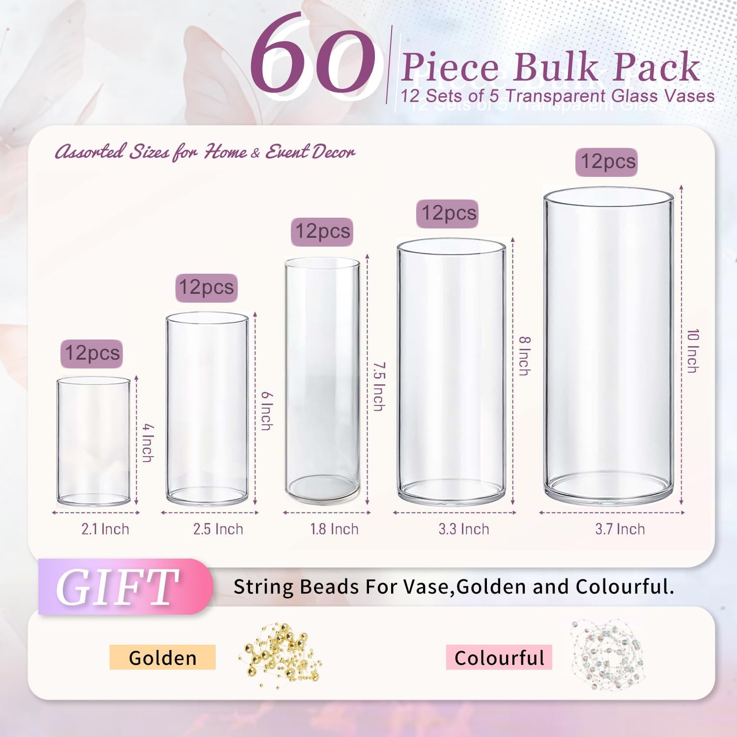 60pcs Glass Vase Cylinder Vases for Centerpieces Small Flower Glass Vases Home Decor Centerpiece Table Clear Flower Vase Decorations for Wedding&Holiday 4,6,7.5,8,10 Inch Tall