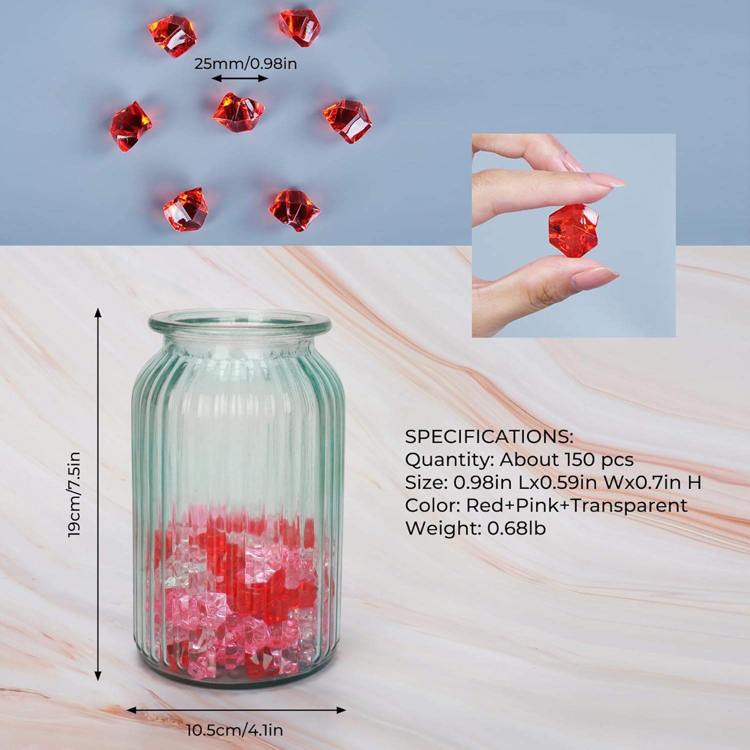 Babenest Acrylic Crushed Ice Rocks, 150 PCS Fake Crystals Plastic Ice Cubes Diamonds Gems for Vase Fillers, Home Decoration, Table Scatter, Event, Wedding, Arts & Crafts(Clear/Pink/Red)