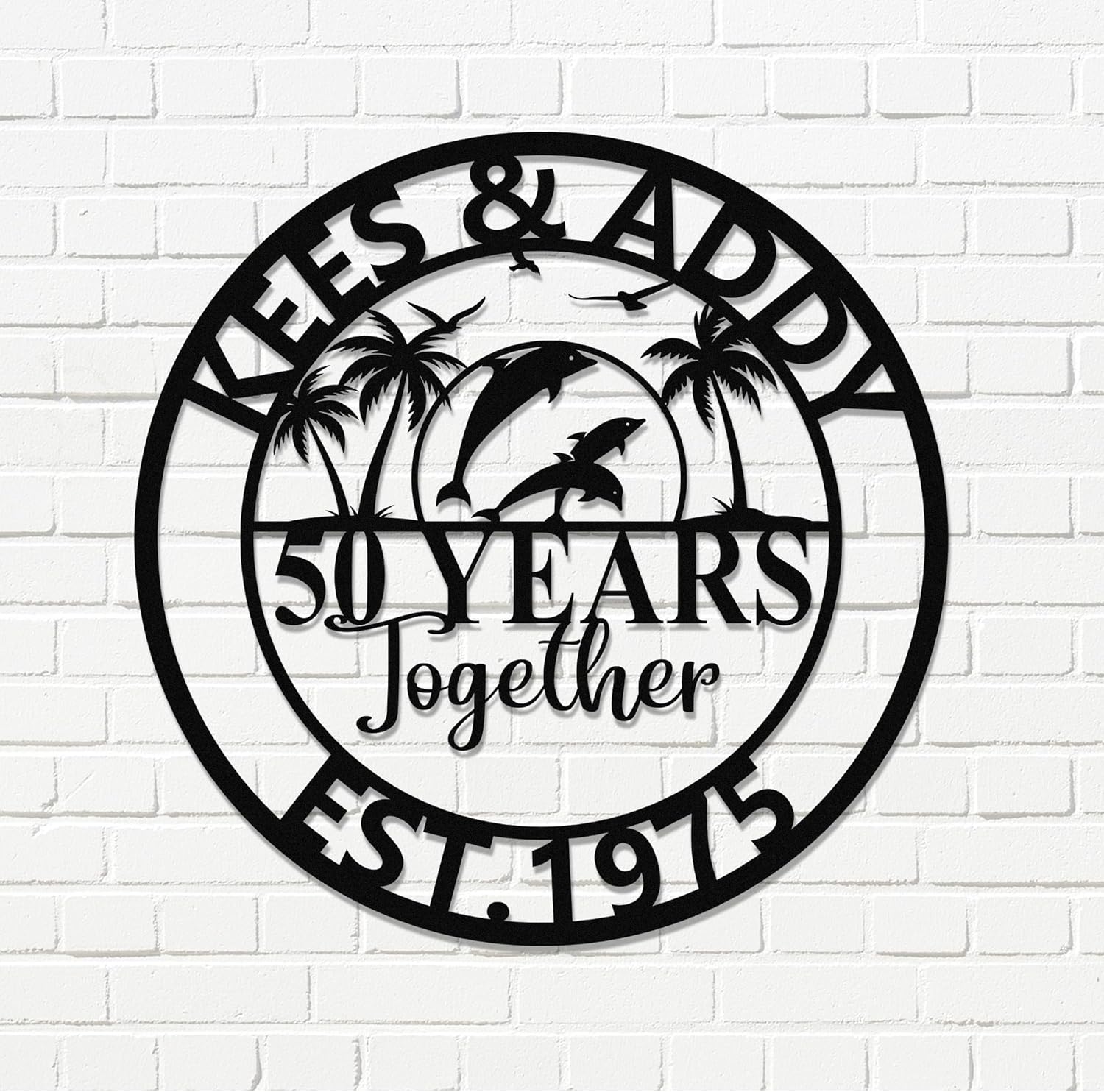 Personalized 50th Wedding Anniversary Sign Gifts for Parents Custom Metal Anniversary Sign Personalized Wedding Gifts for Couples Husband Wife Custom Monogram Name Signs Housewarming Gift