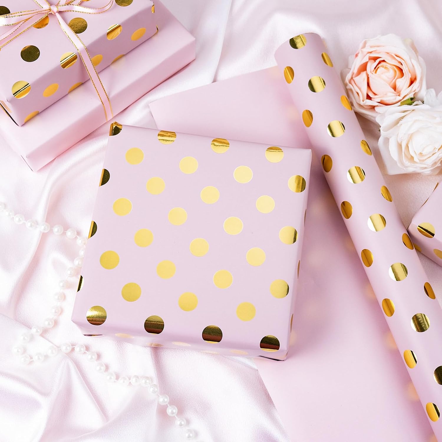 - Double-Sided Wrapping Paper: One side has pink and gold polka dots, and the other is solid pink, making your gift wrap both fun and elegant