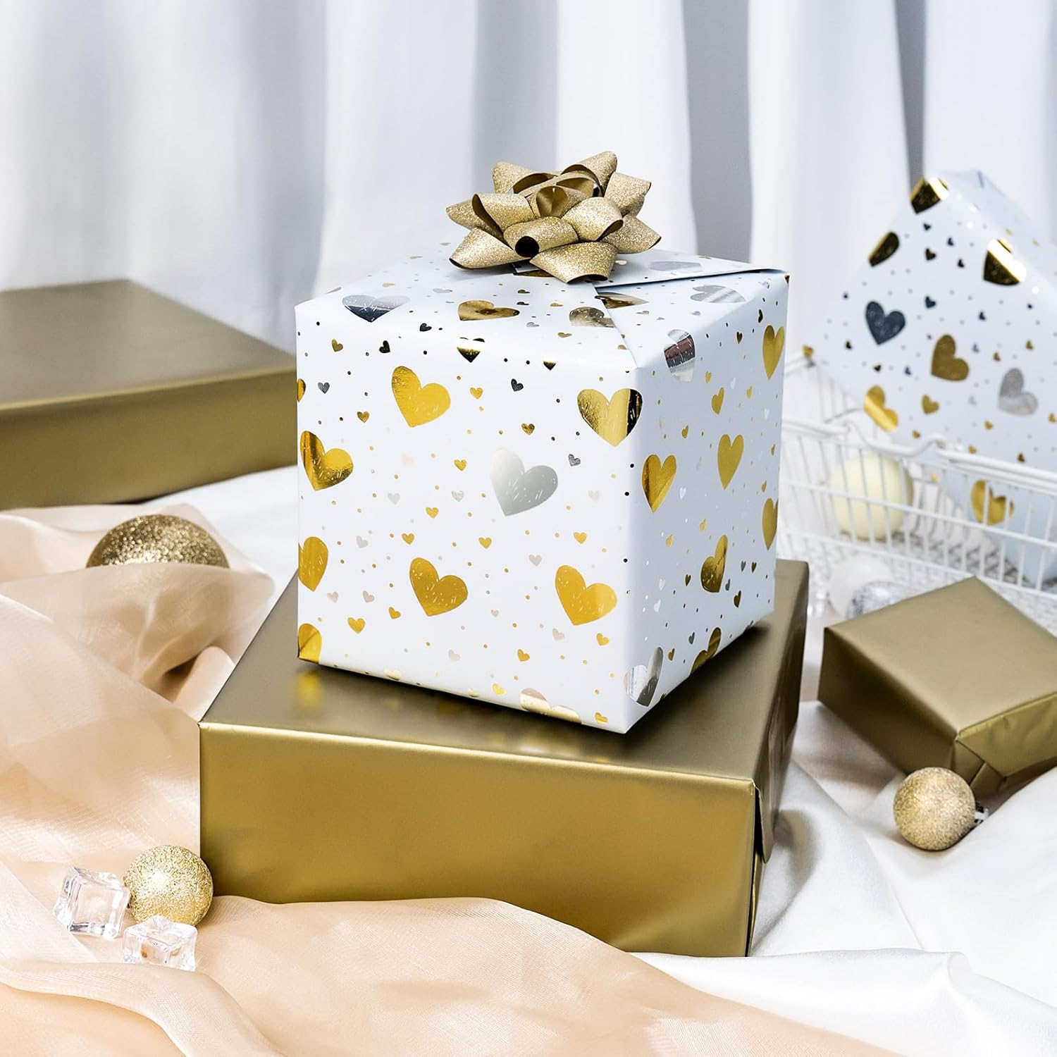 - Double-Sided Wrapping Paper: One side features gold and silver hearts, while the other is solid gold, making your gift wrap unique and eye-catching