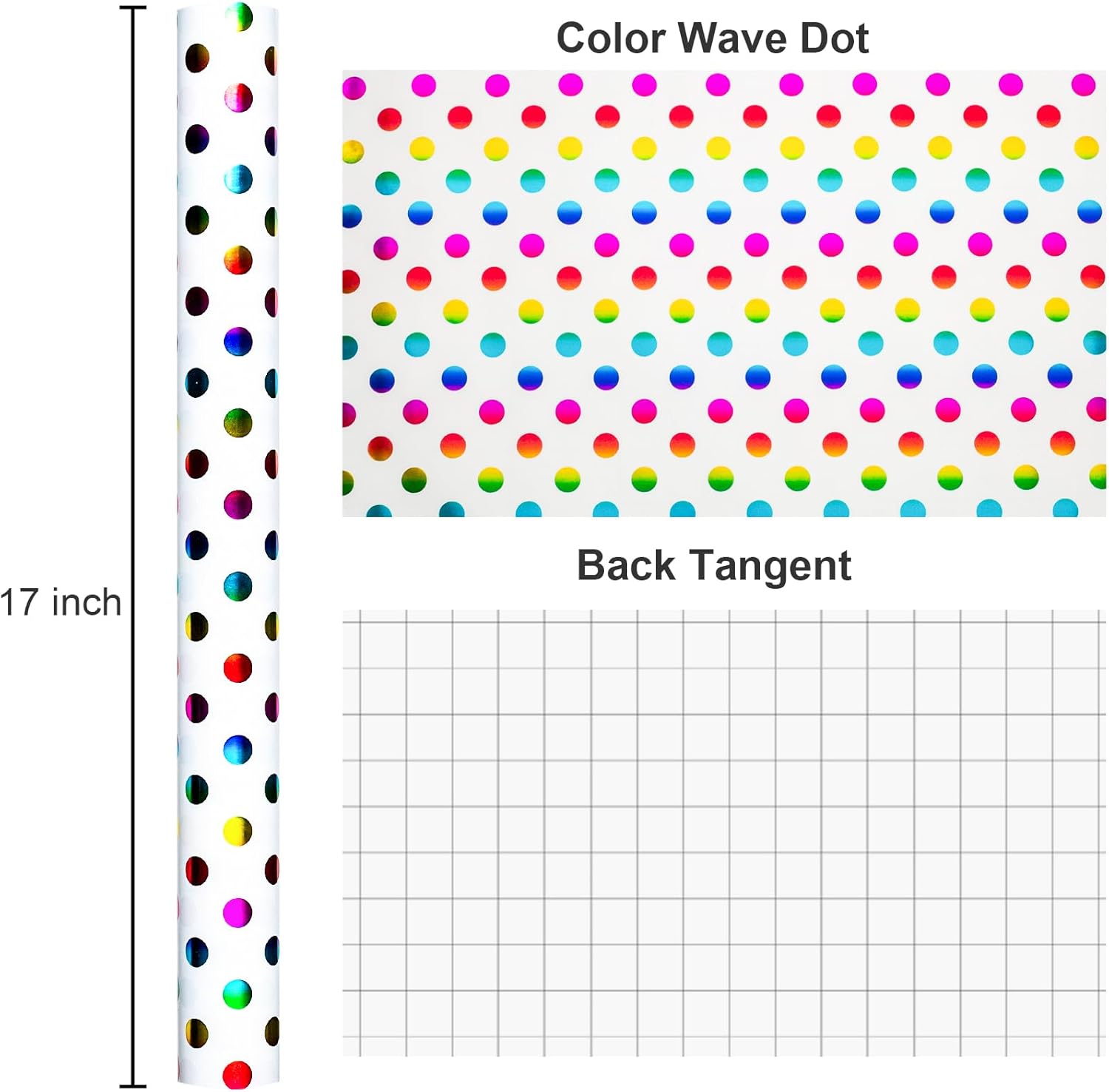 - Rainbow Wrapping Paper: Classic rainbow polka dots add a fun, unique touch to your gifts. The back includes grid lines for easy cutting and less waste