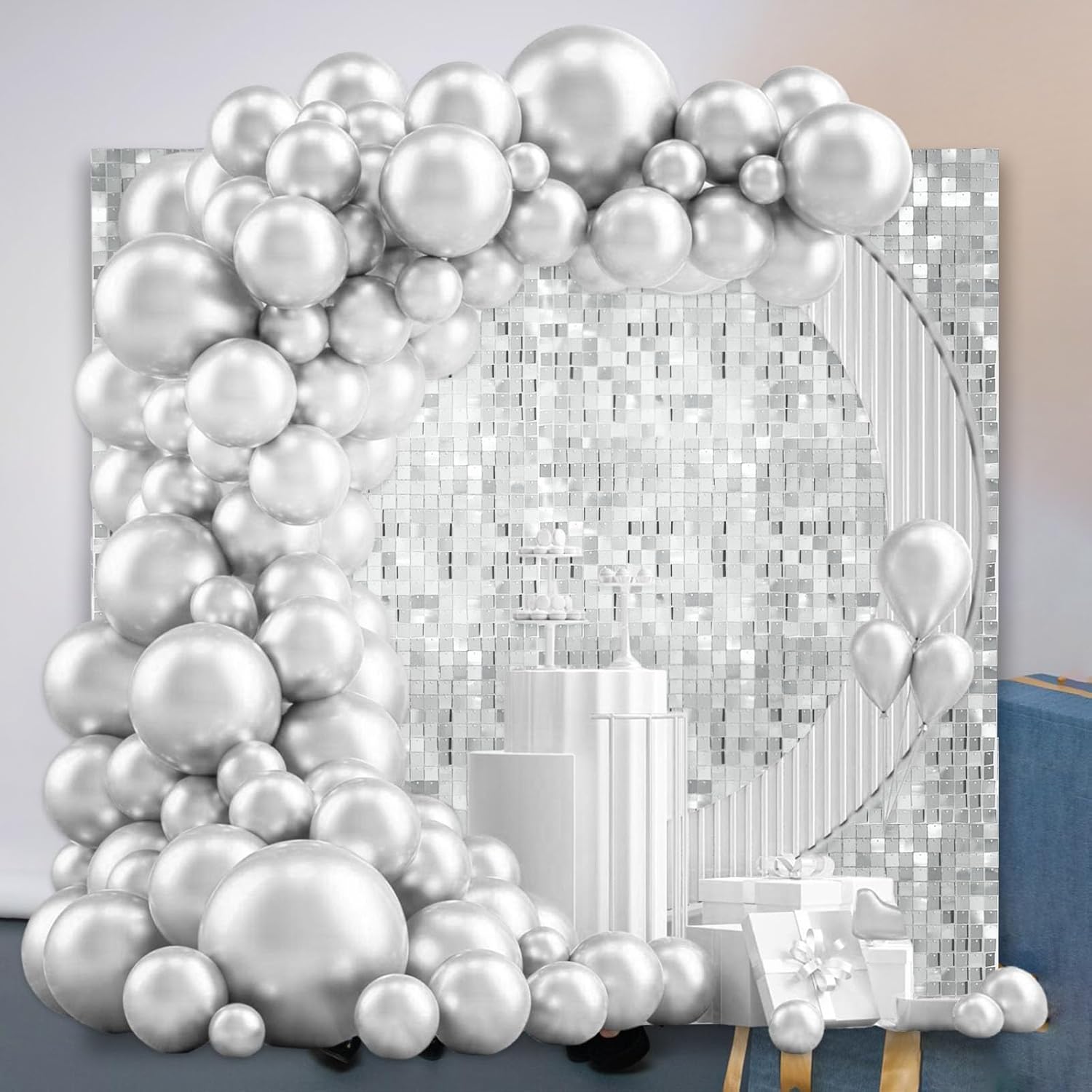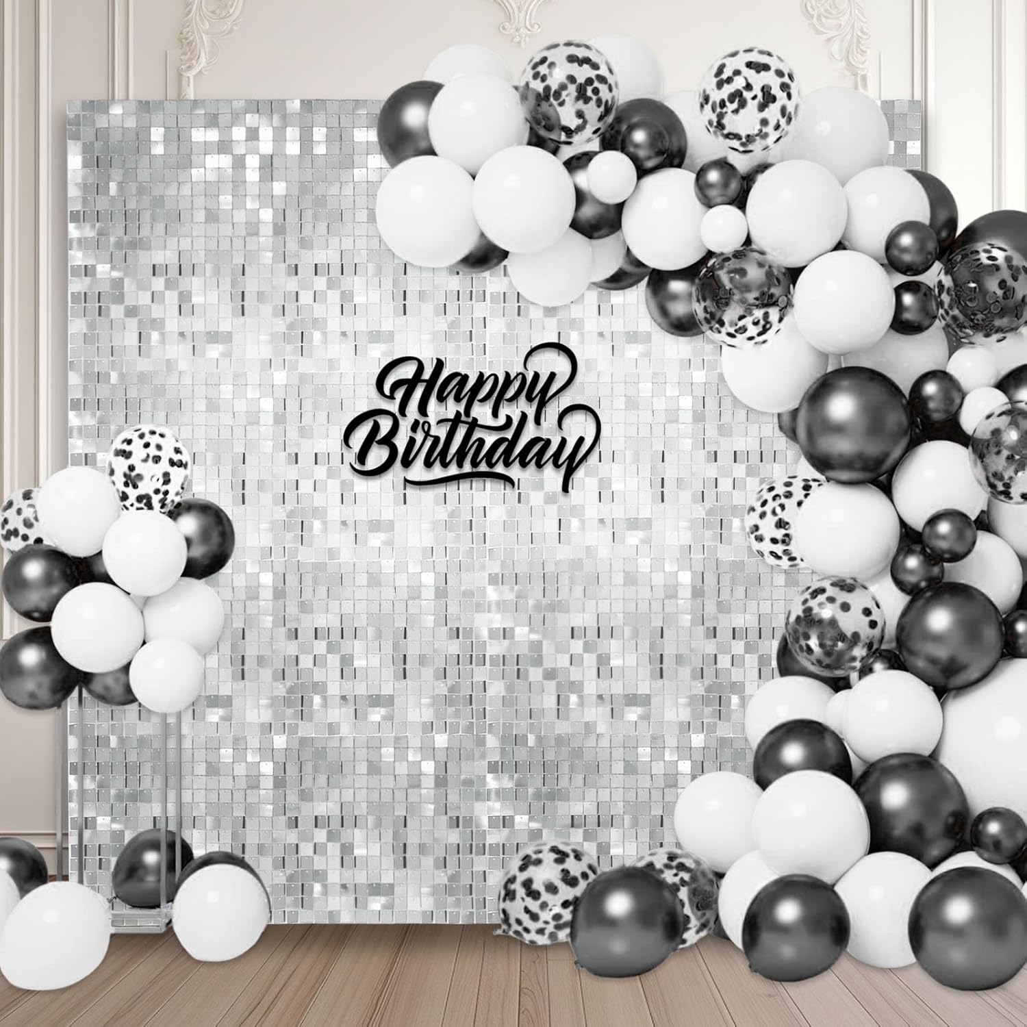 - 【Shimmer Wall Backdrops】The sequins of the silver glitter wall panels will move with the wind and sparkle when the light hits them. You can match it with any balloon, wall, outdoor or indoor backdrop to a fantastic shiny photo backdrop, creating a nice shiny atmosphere for your party.