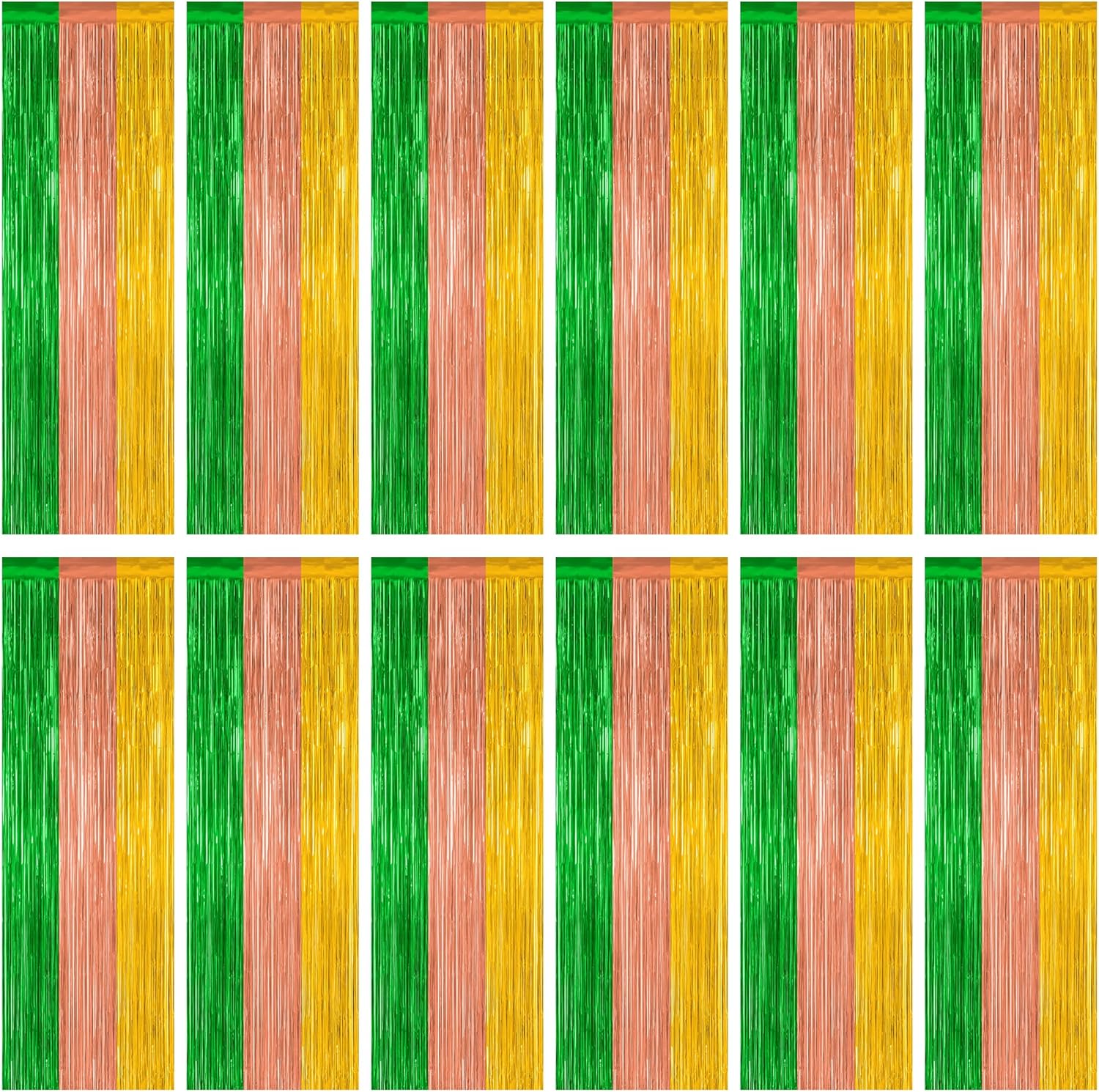 - Package Includes: This set includes 12 pcs Hawaiian tinsel backdrop consisting of green, brown and yellow colors, each measuring 3.28 x 7.05 feet and can be cut to your desired length.