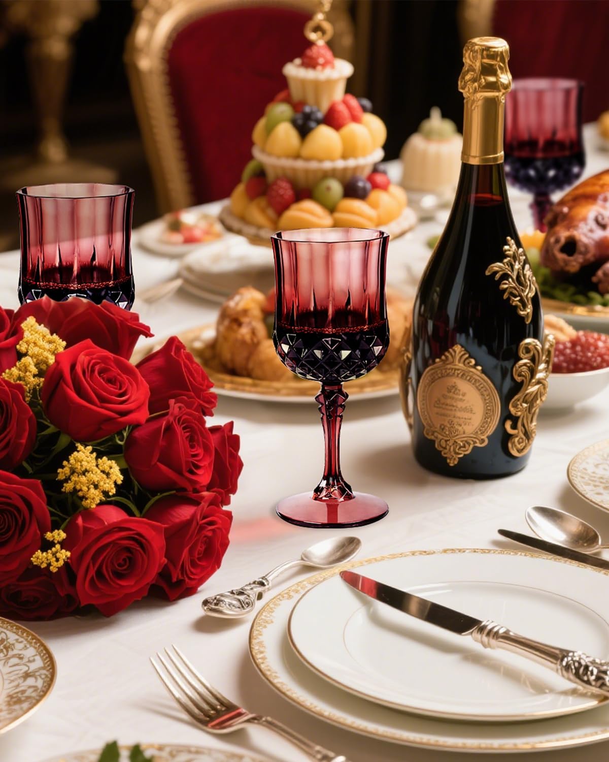 - Multi-occasion use: These 7 Oz disposable burgundy wine glasses can be used in various occasions, such as entertainment events, weddings, bars, or casual gatherings. These plastic wine cups blend seamlessly with tableware. Plastic goblet glasses can not only serve as table decorations but also hold wine, beer, cocktails, juice, and so on.