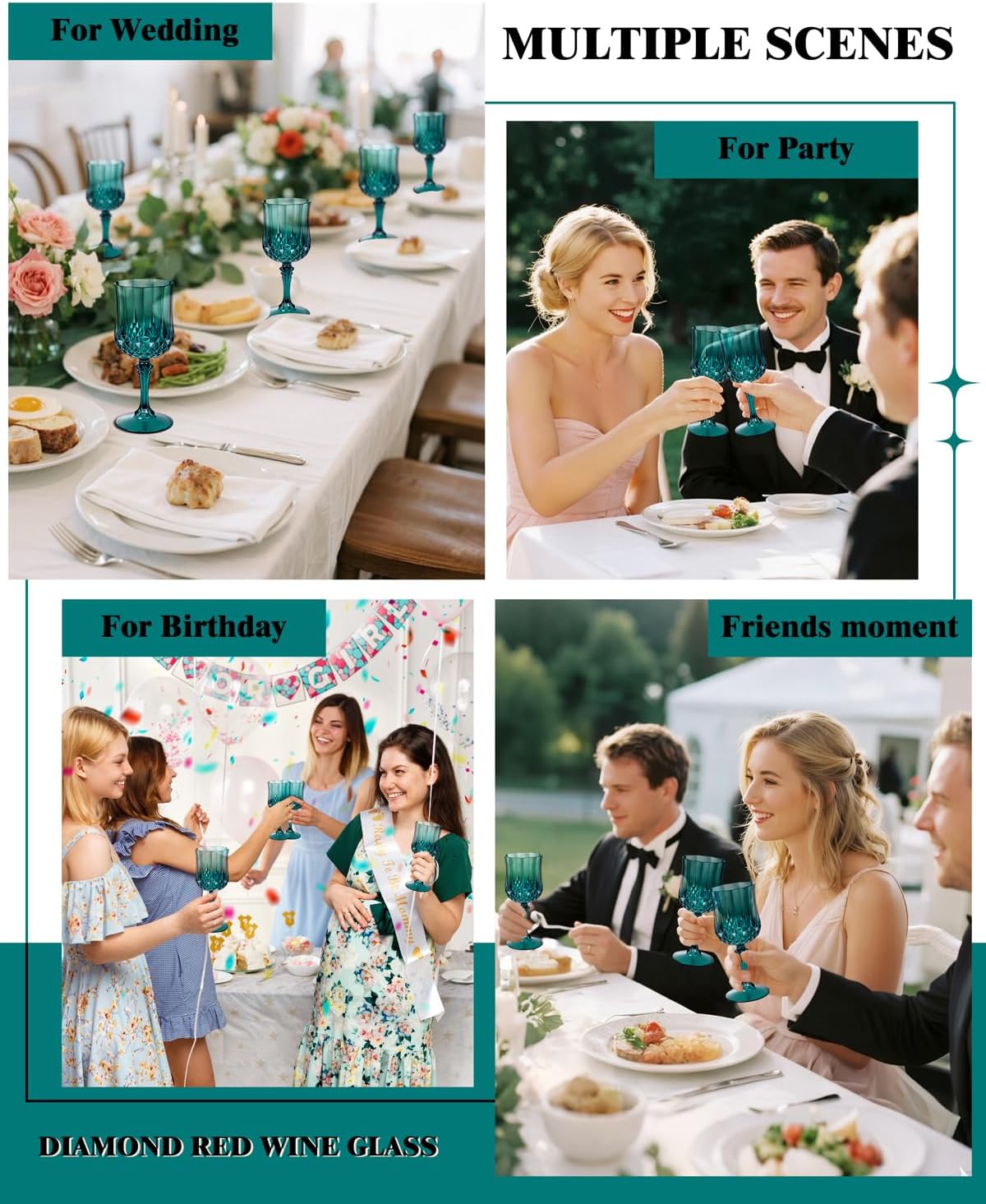 - Retro diamond-shaped pattern design: Imitating real crystal, plastic wine glasses have the charm of a vintage wine glass. Plastic wine glasses disposable’s retro design enriches the modern and classic dining table setting with an elegant atmosphere.