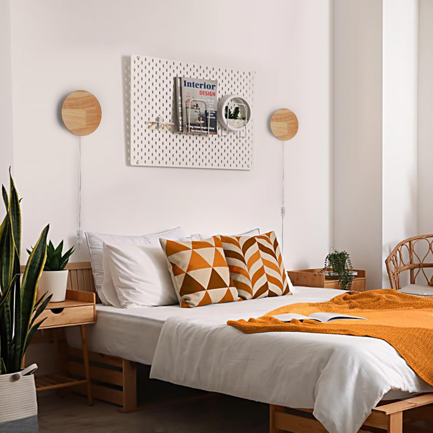 - Modern Minimalist LED Wall Sconces: This is a minimalist stylish LED backlit wall light with plug in cord. The round panel of the lamp is made of solid wood with natural wood grain, and the texture of each lamp is unique. While providing ample lighting to the space, it also adds a touch of chic, modern farmhouse vibes. It is suitable for lighting up various places such as bedroom, living room, hallway, foyer, stairs, office, kid's room, etc.