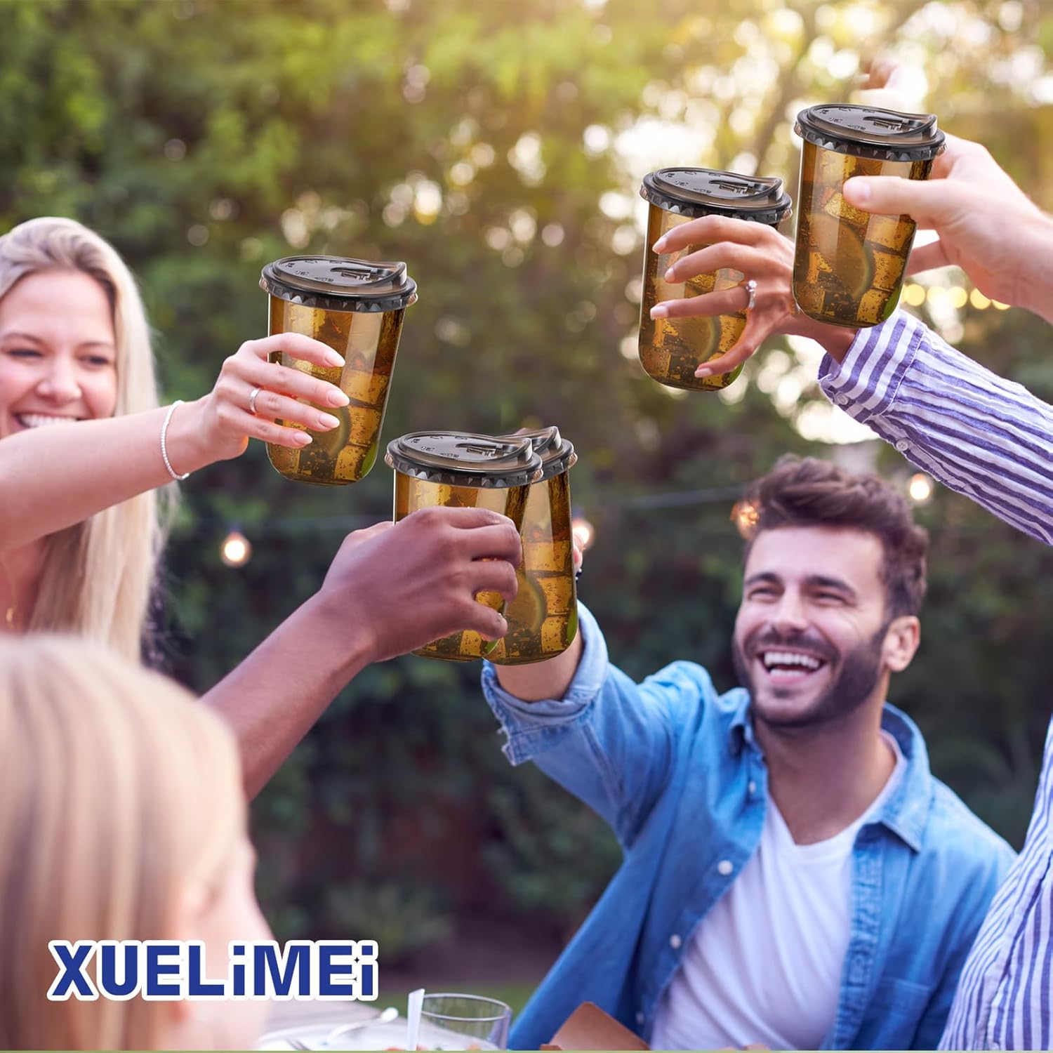 16oz Disposable Stemless Glasses With Strawless Sip Lids,PET Disposable Drinking Cups,Clear Plastic Wine Glasses for Parties Birthday,Wedding,Meeting,Christmas Party Supplies (50, Black)
