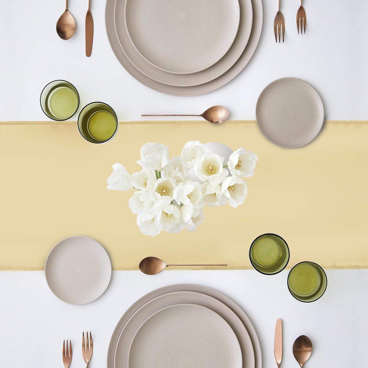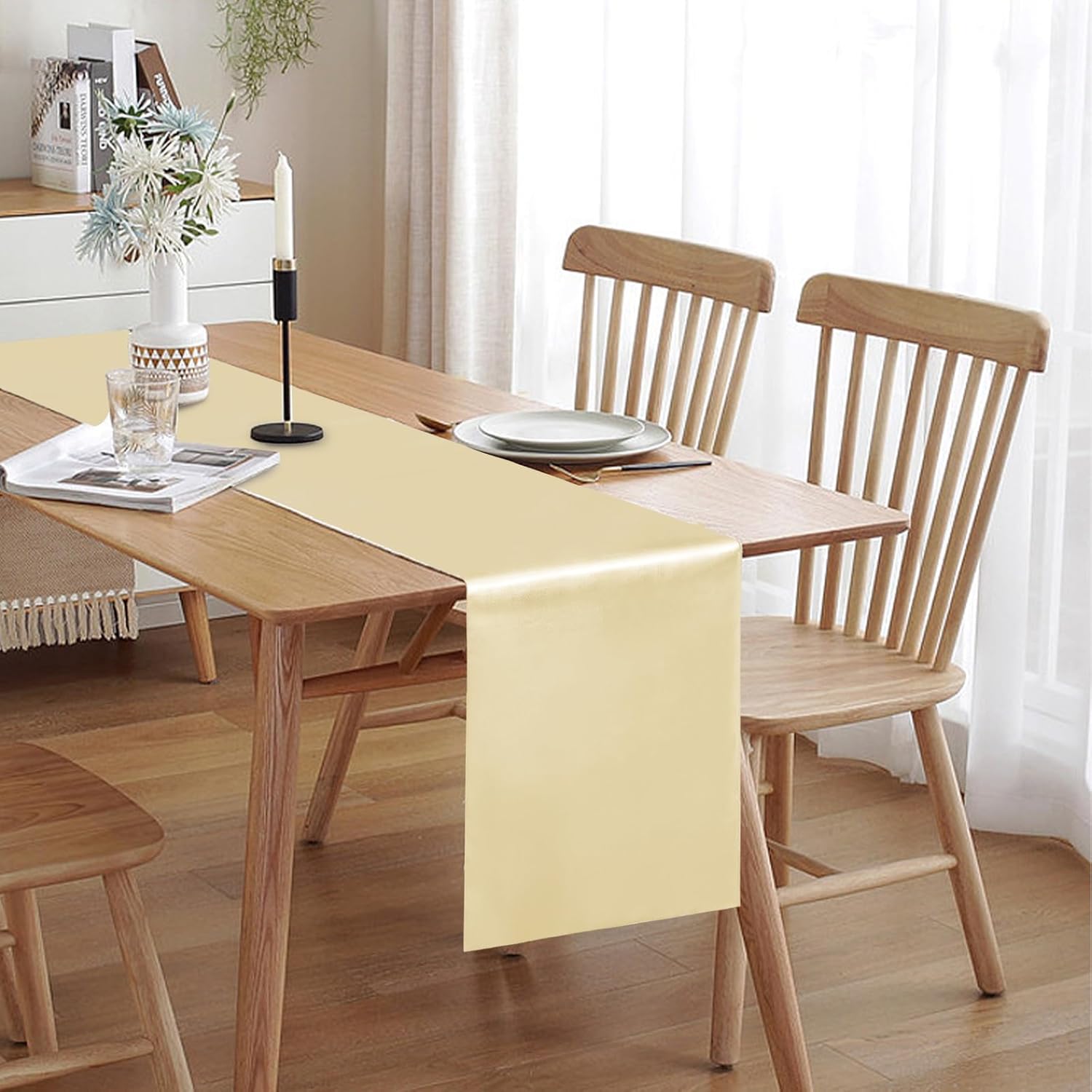 10 Pack Satin Table Runner 12 x 108 Inch Long Champagne Silk Table Runner for Wedding Party Banquet Birthday Decoration