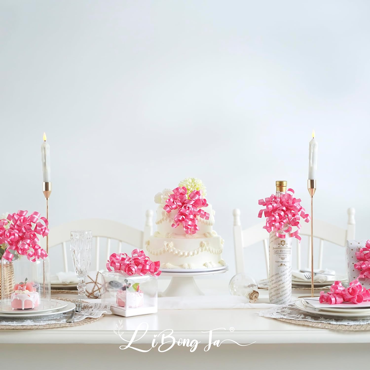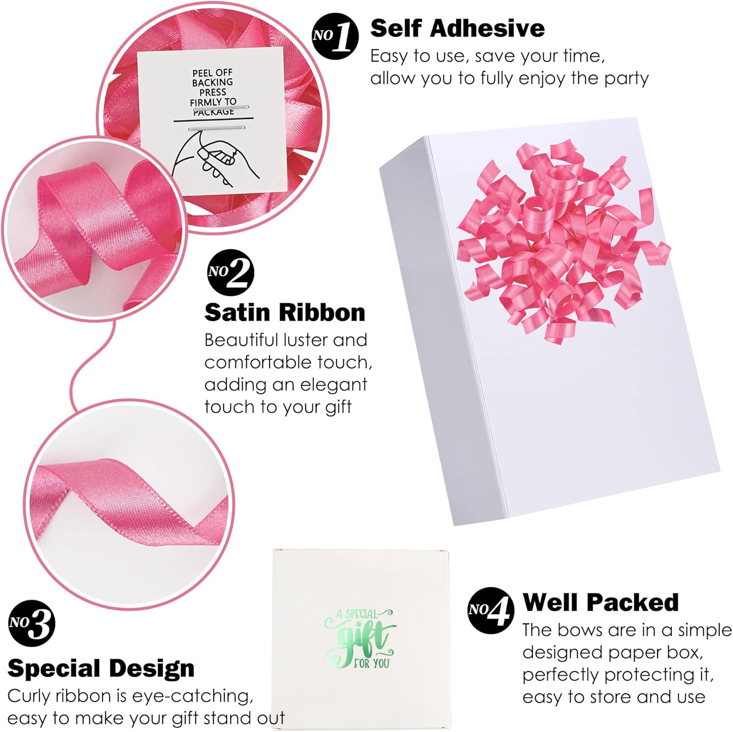 5'' Hot Pink Gift Bow Curly Ribbon Bows Set of 8, Double Faced Satin Ribbon Bow Premade Self Adhesive Bow Decorations for Party, Wedding, Holiday, Gift Bows for Crafts, Wine Bottle, Presents