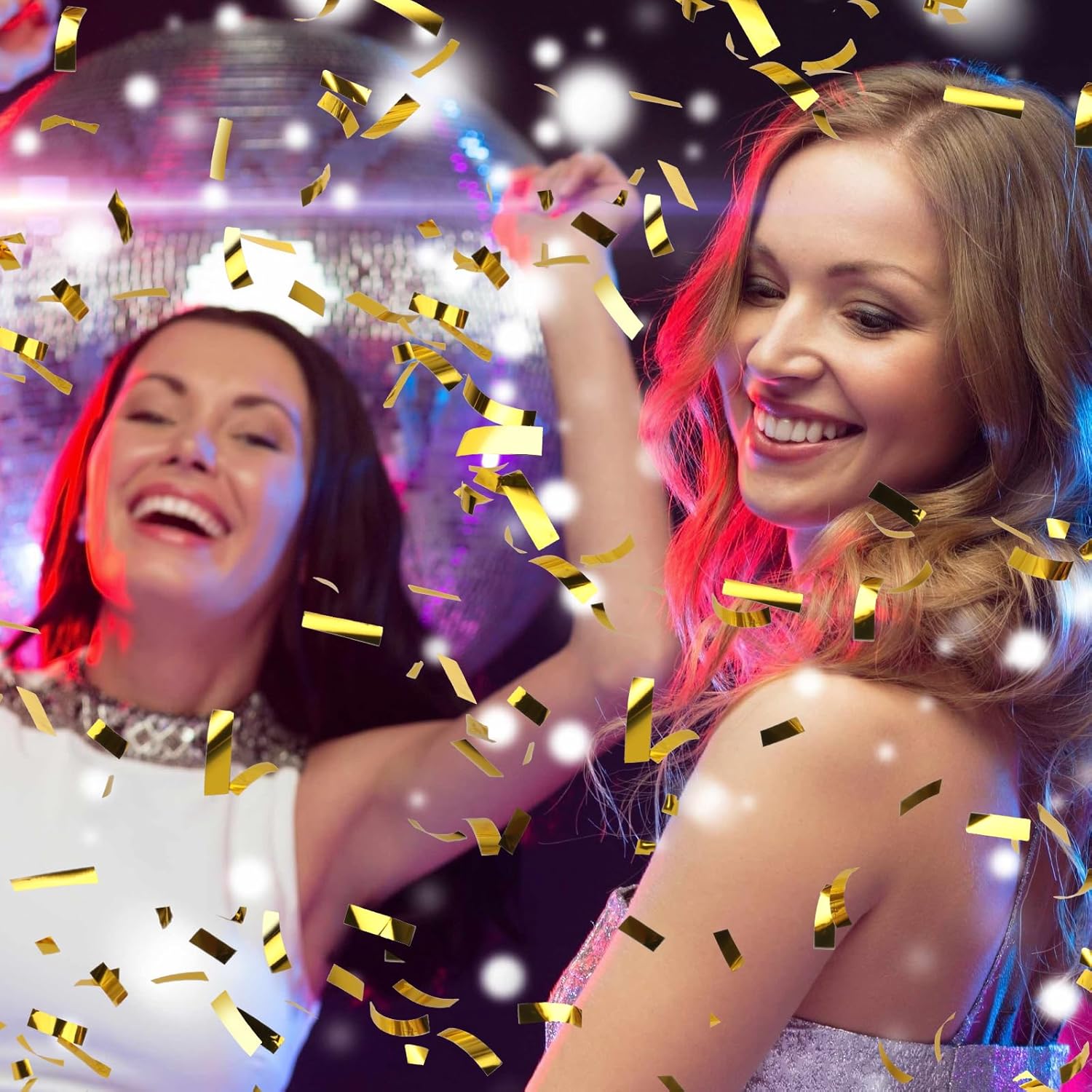 - Stunning Visuals with Golden Confetti Our gold confetti poppers are more than just practical—they’re breathtaking! Each confetti cannon releases a dazzling shower of golden foil confetti, creating a stunning visual effect that will elevate your party decorations and make your celebration truly memorable.