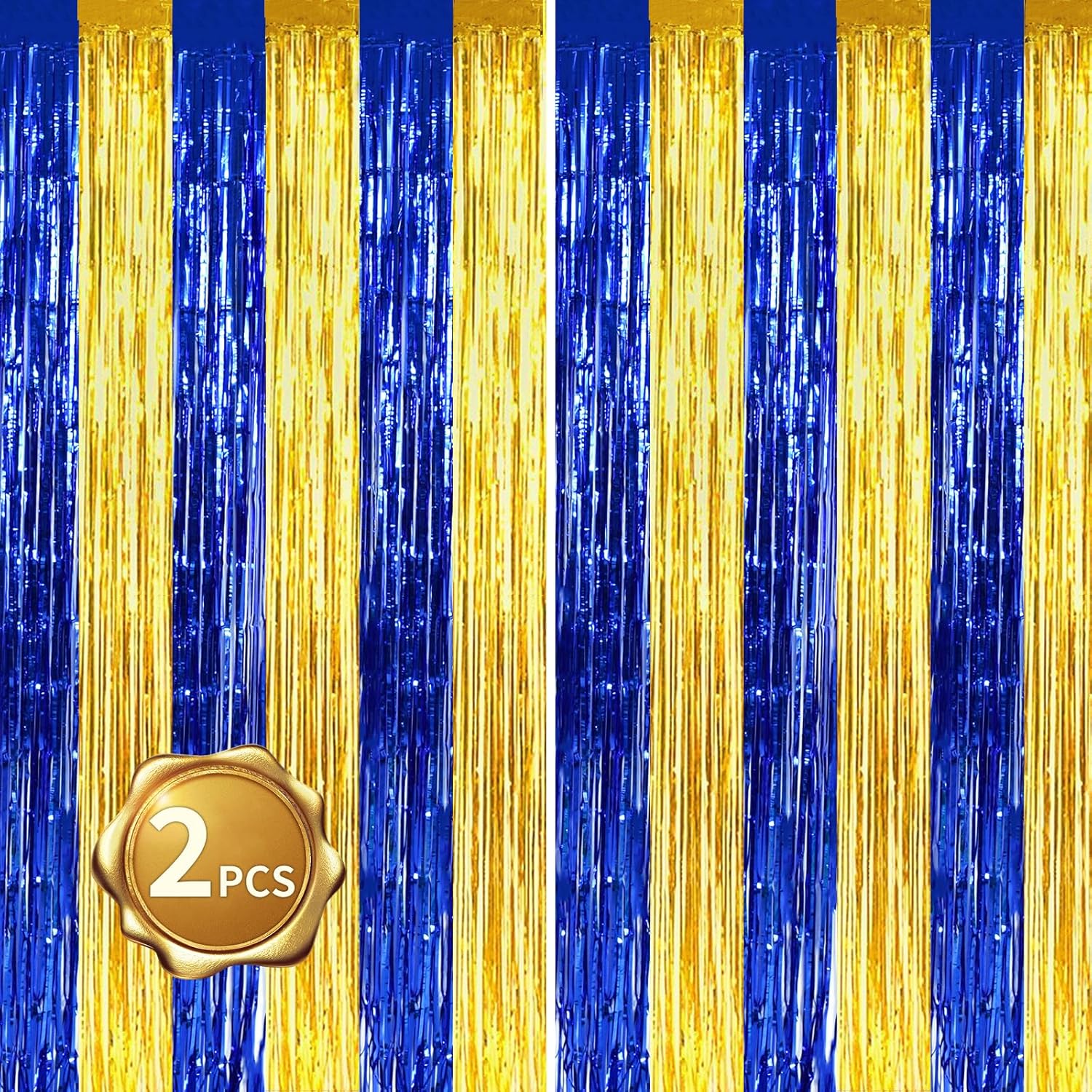 BEISHIDA 2Pcs Blue Gold Door Streamers Congrats Grade 2025 Decoration Backdrop Foil Fringe Tinsel Party Streamers Curtains Backdrops for Birthday 2025 Graduation Baby Shower(3.28 ft x 6.56 ft)
