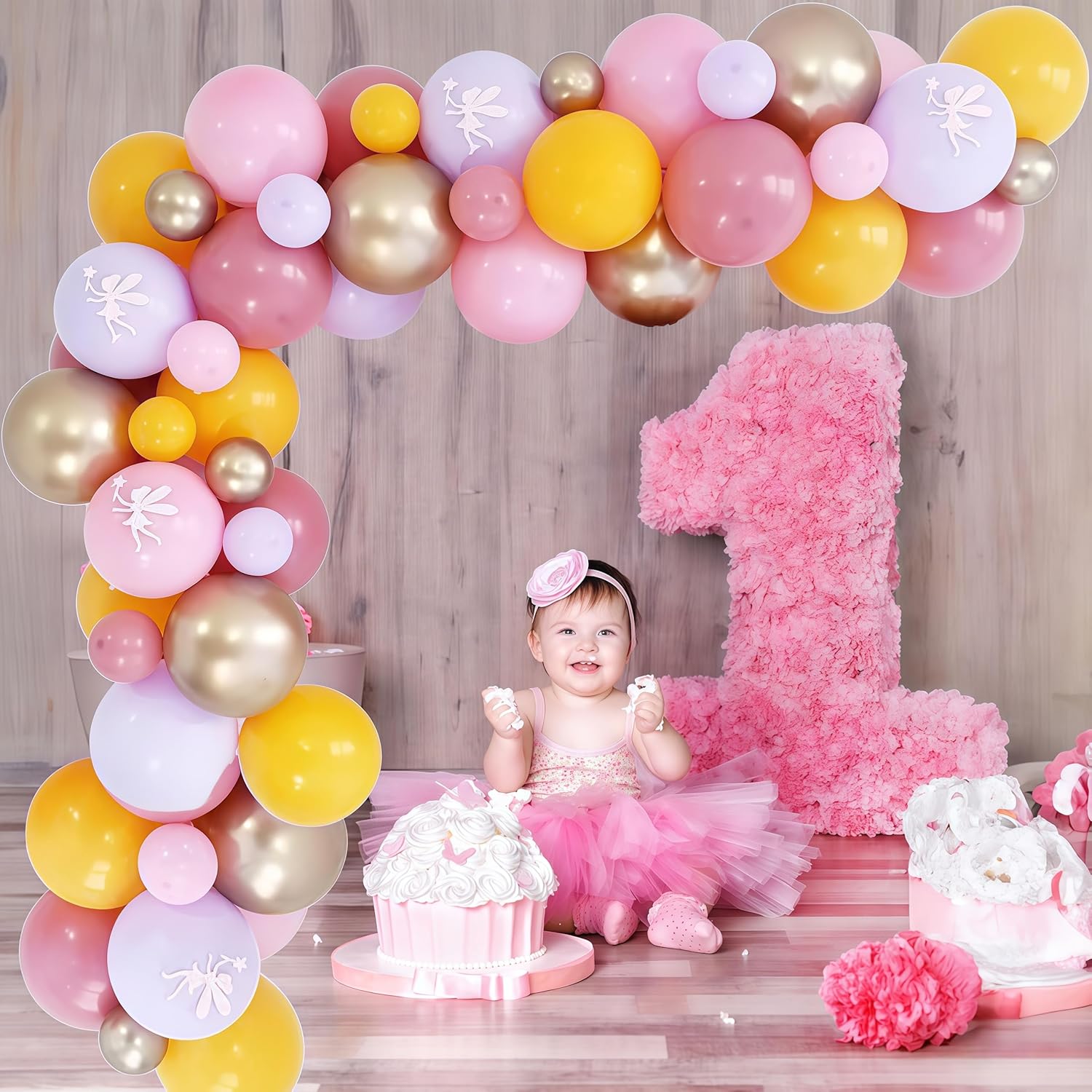 Fairy Balloon Arch Kit 107Pcs Pastel Pink Purple Balloons Garland Dusty Pink Yellow Champagne Gold Birthday Party Balloons for Girls Mushroom Butterfly Garden Wild Floral Bridal Baby Shower Decoration