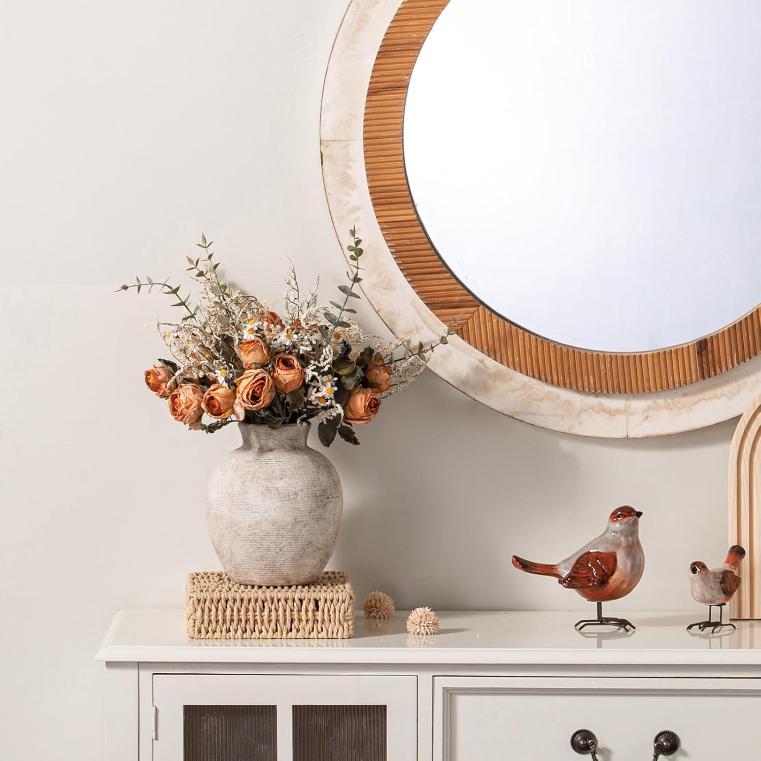 - 【Handcrafted & Rich in Texture】Featuring intricate detailing and a rich texture, this vase complements a variety of home styles—farmhouse, rustic, country, even modern. It effortlessly blends in with existing furniture and accessories, adding a timeless charm and harmonious look to your space. (Note: Each piece is hand-finished, so slight variations in texture make every vase unique.)