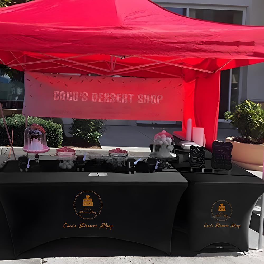 Custom Table Cloth with Business Logo 4FT 5FT 6 FT 8 FT Spandex Customized Table Cover Stretch for Tradeshow Events Birthday Wedding Anniversary Mantel Personalized Table Cloth (6FT)