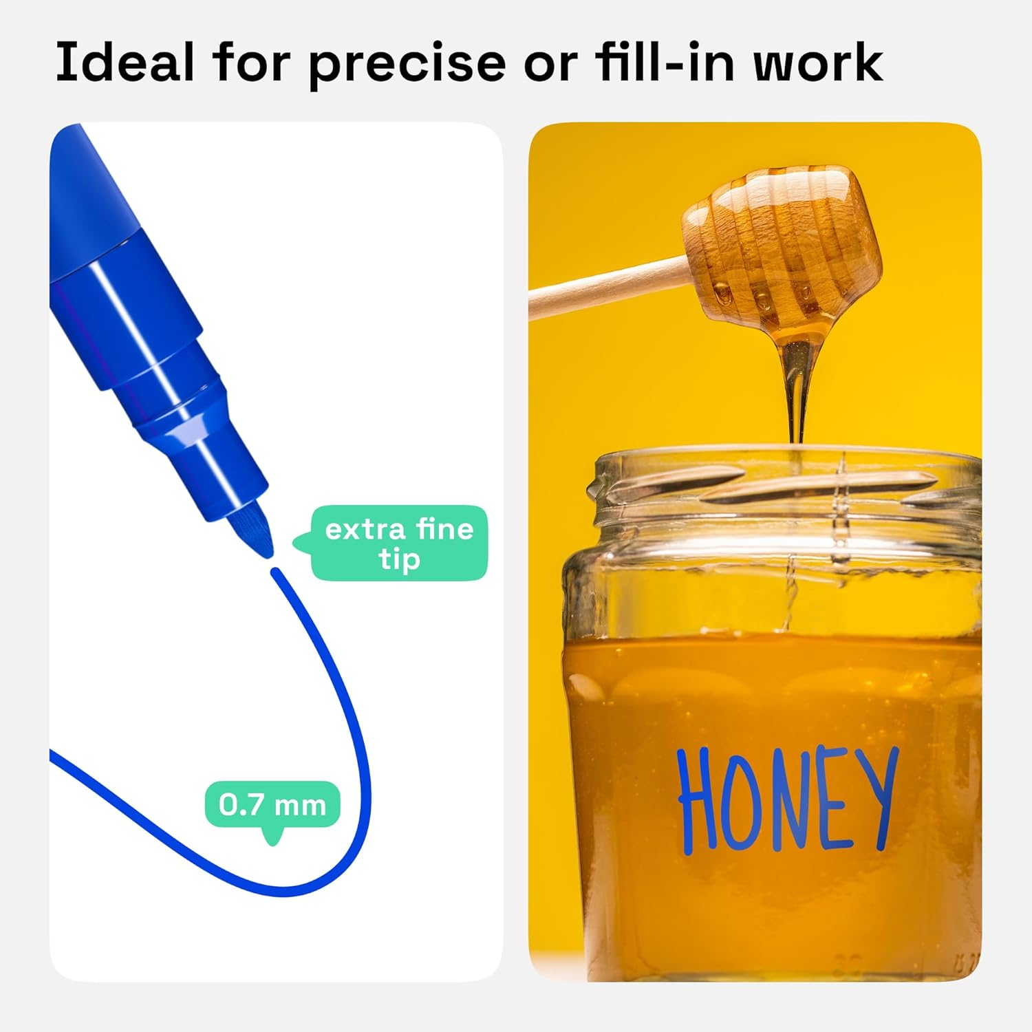 - Extra-Fine Tip: Each oil-based blue paint marker features a precise 0.7mm extra-fine tip. Perfect for fine line work, small lettering, rock painting, custom decorations, and DIY art for Christmas, birthdays, weddings, and more.