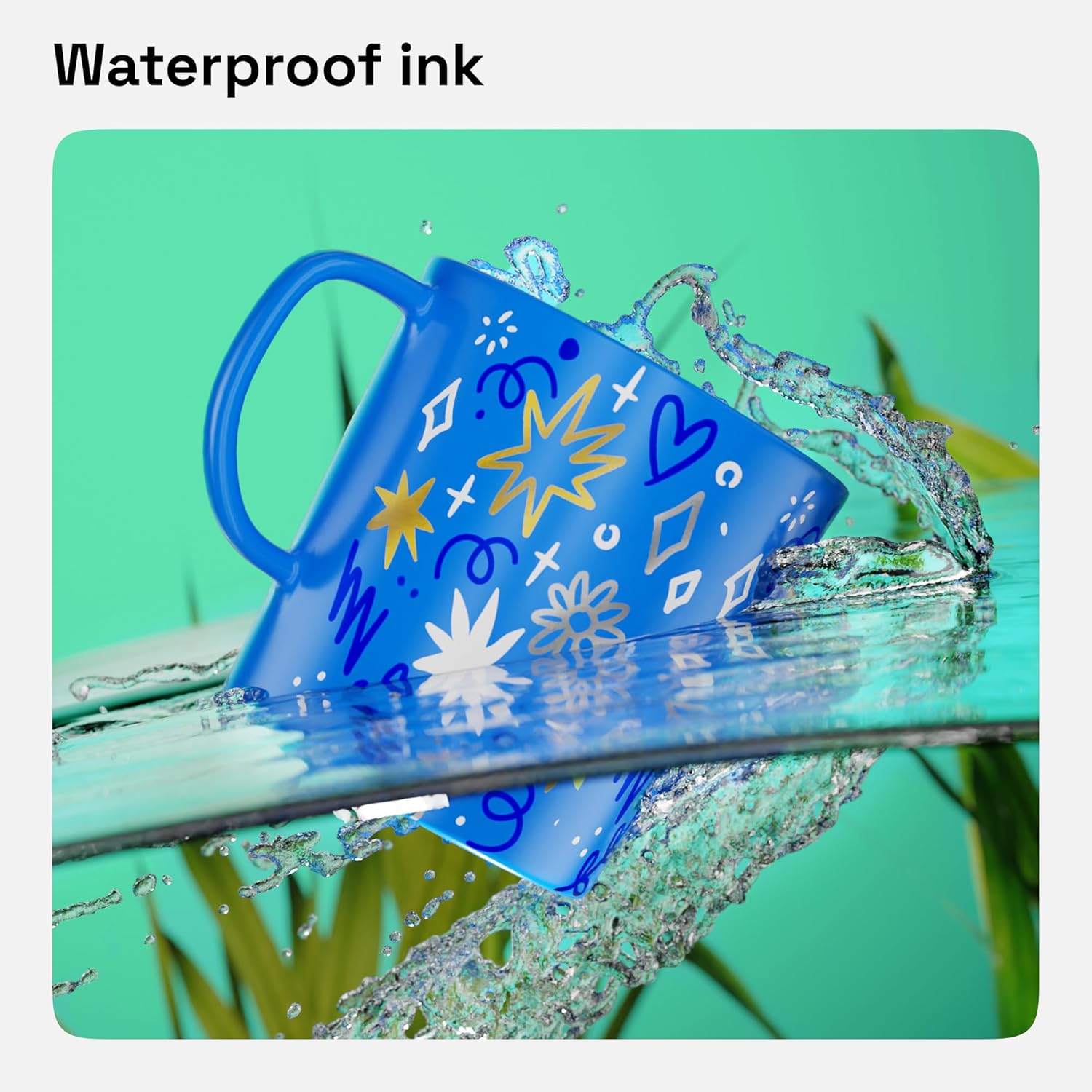 - Multi-Surface Use: Write or draw with blue oil paint pens on glass, plastic, fabric, leather, wood, stone, metal, ceramic, vinyl, or epoxy resin. The blue permanent marker is water-resistant, durable, and perfect for indoor or outdoor designs.